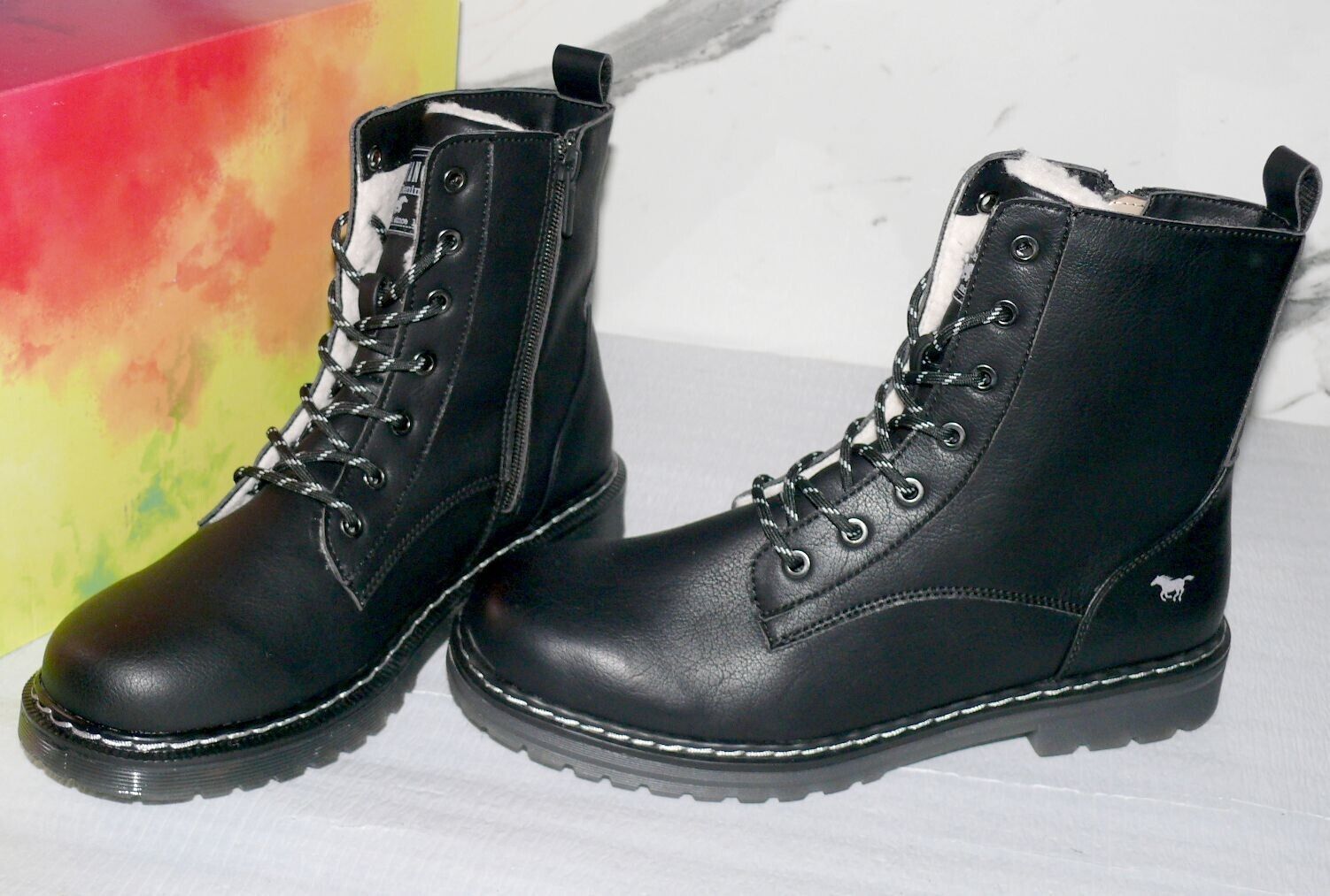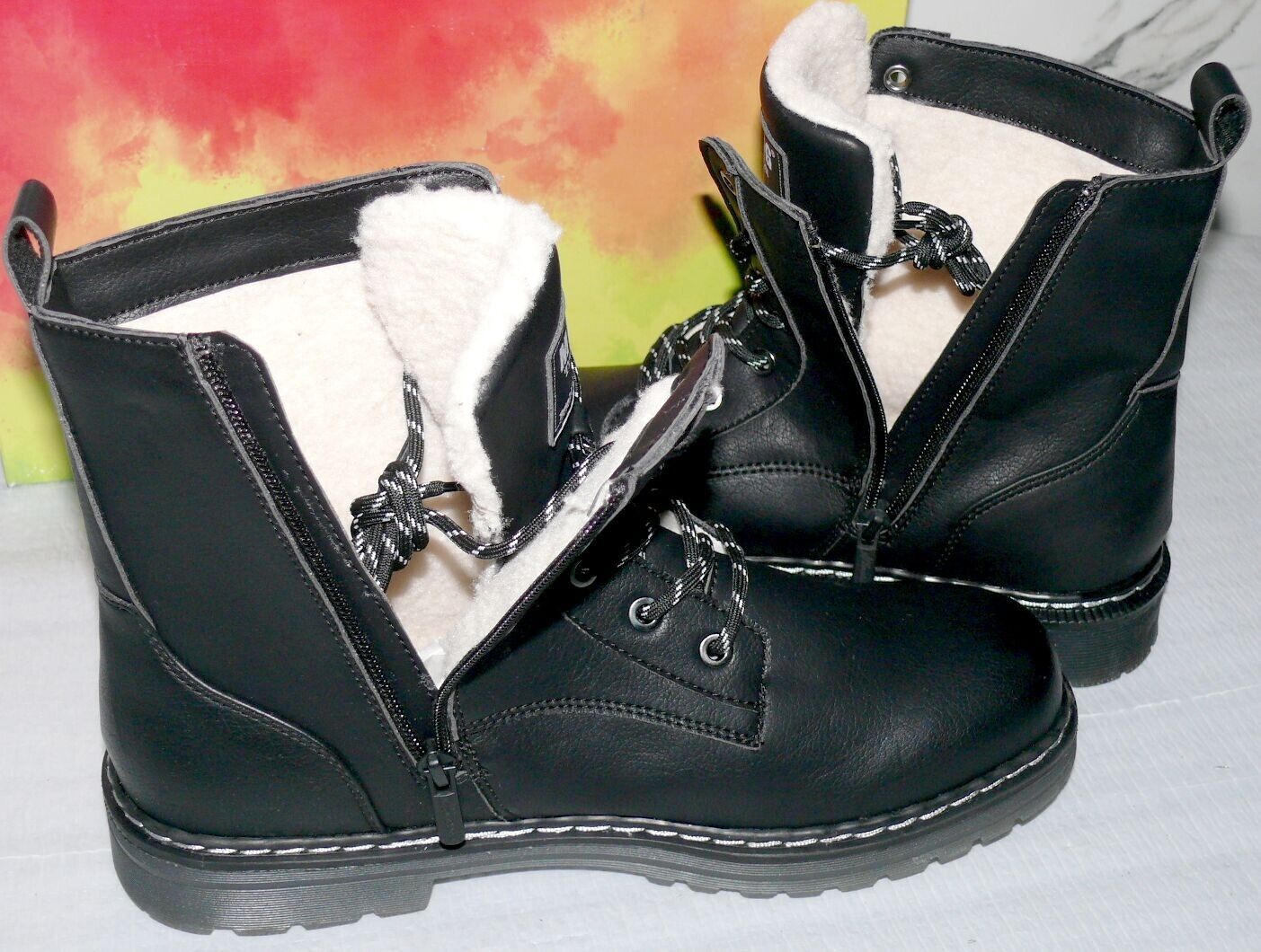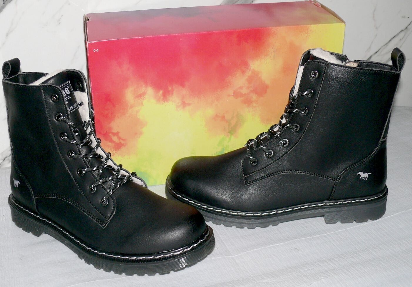 Mustang Denim ZIP Warme Herbst Winter Schuhe Boots Stiefel Futter 42 Schwarz D19