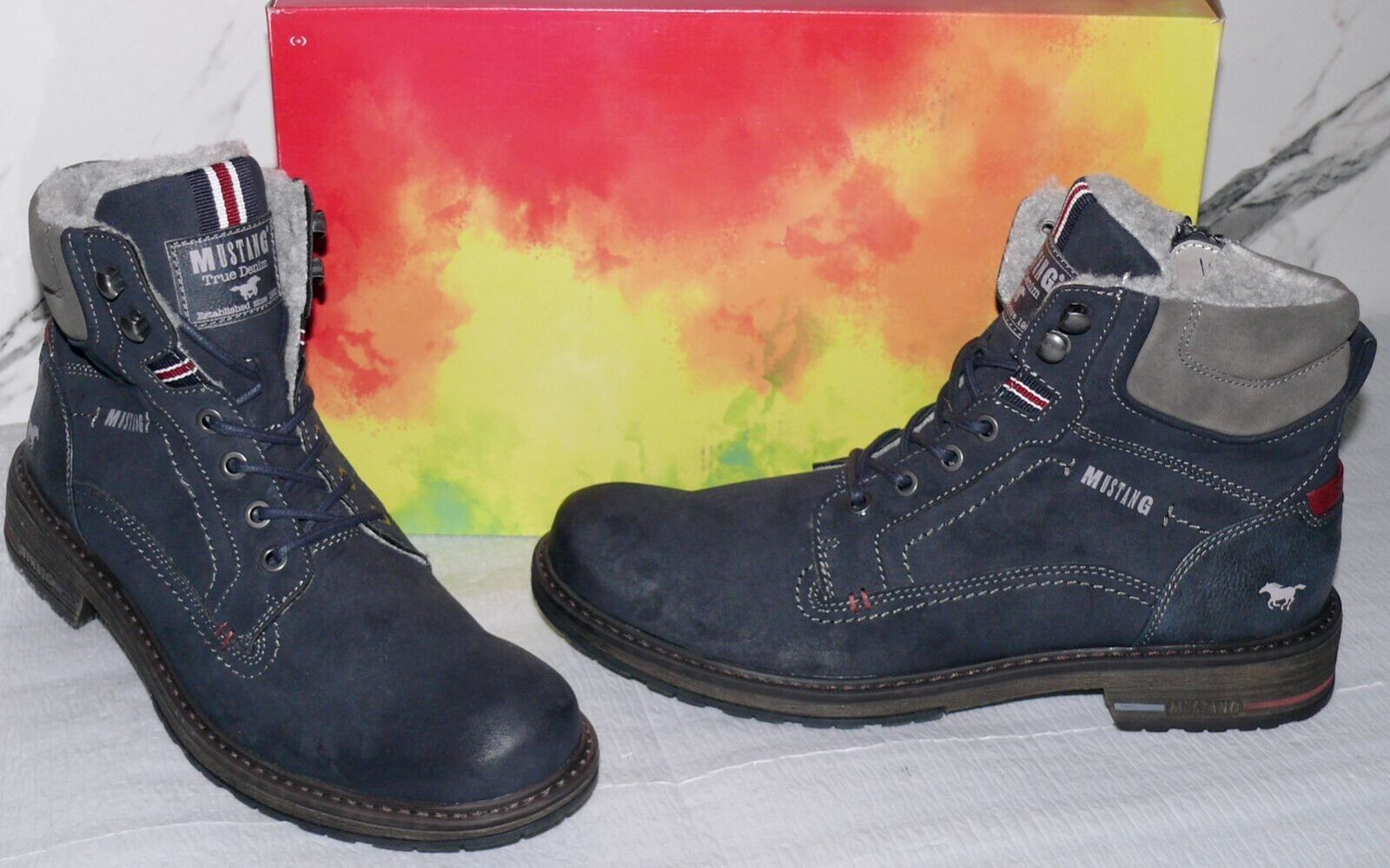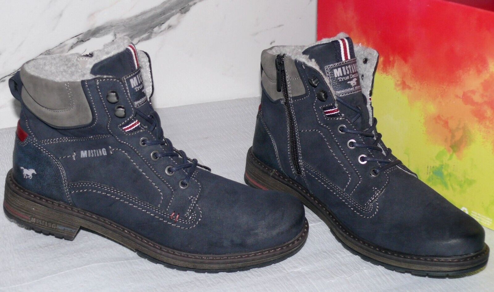 Mustang Modern ZIP Warme Herbst Winter Schuhe Boots Stiefel Futter 42 Navy D2