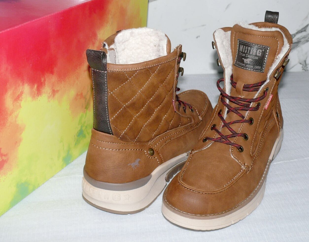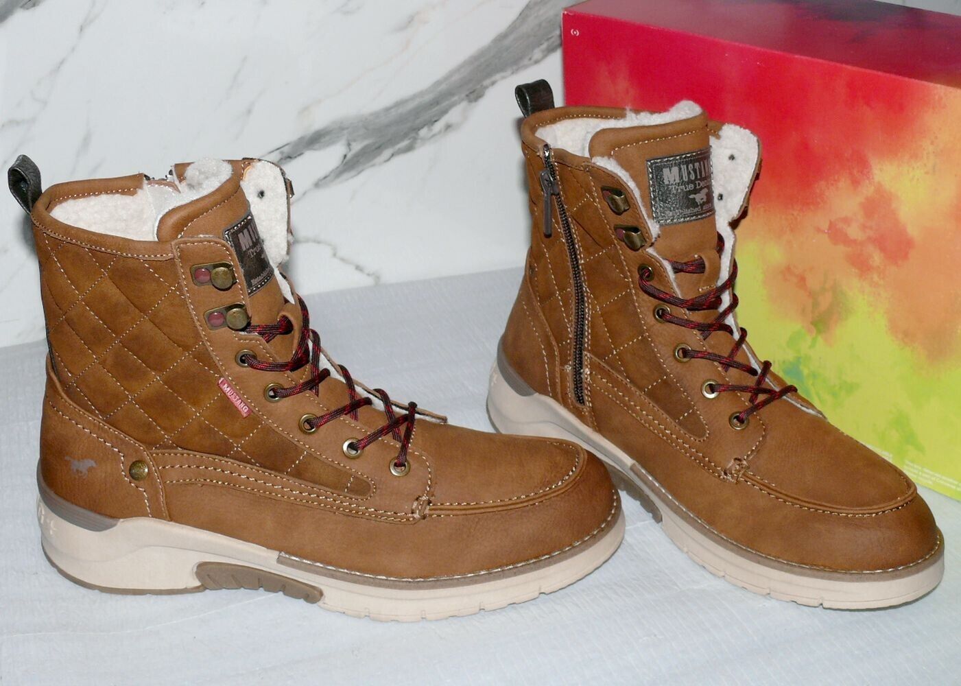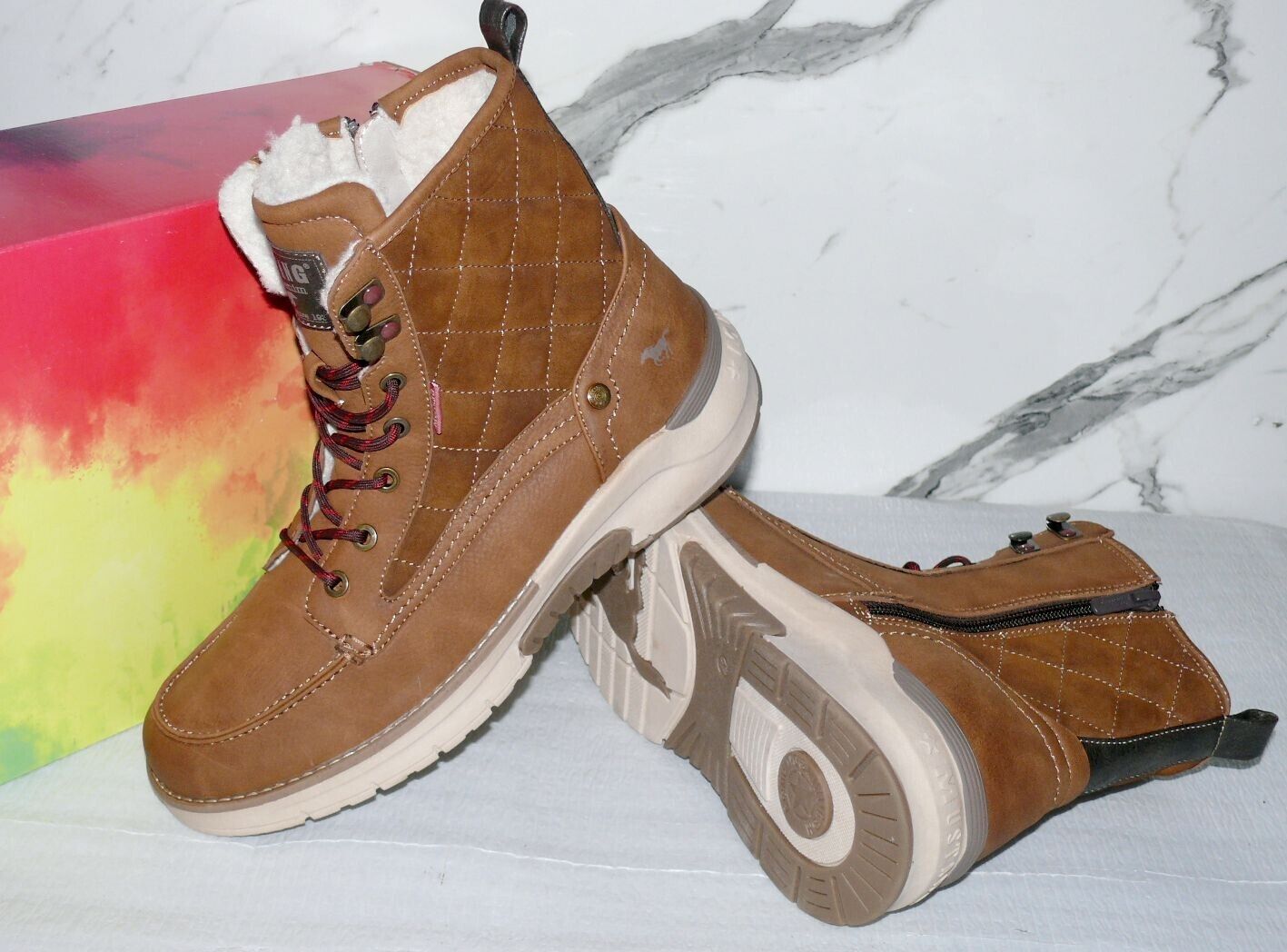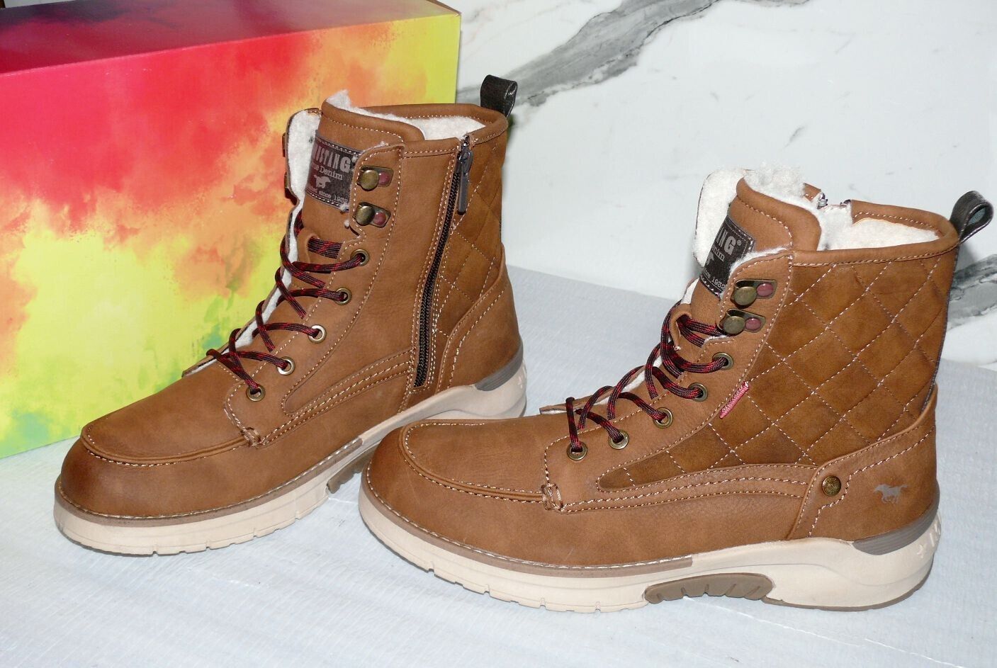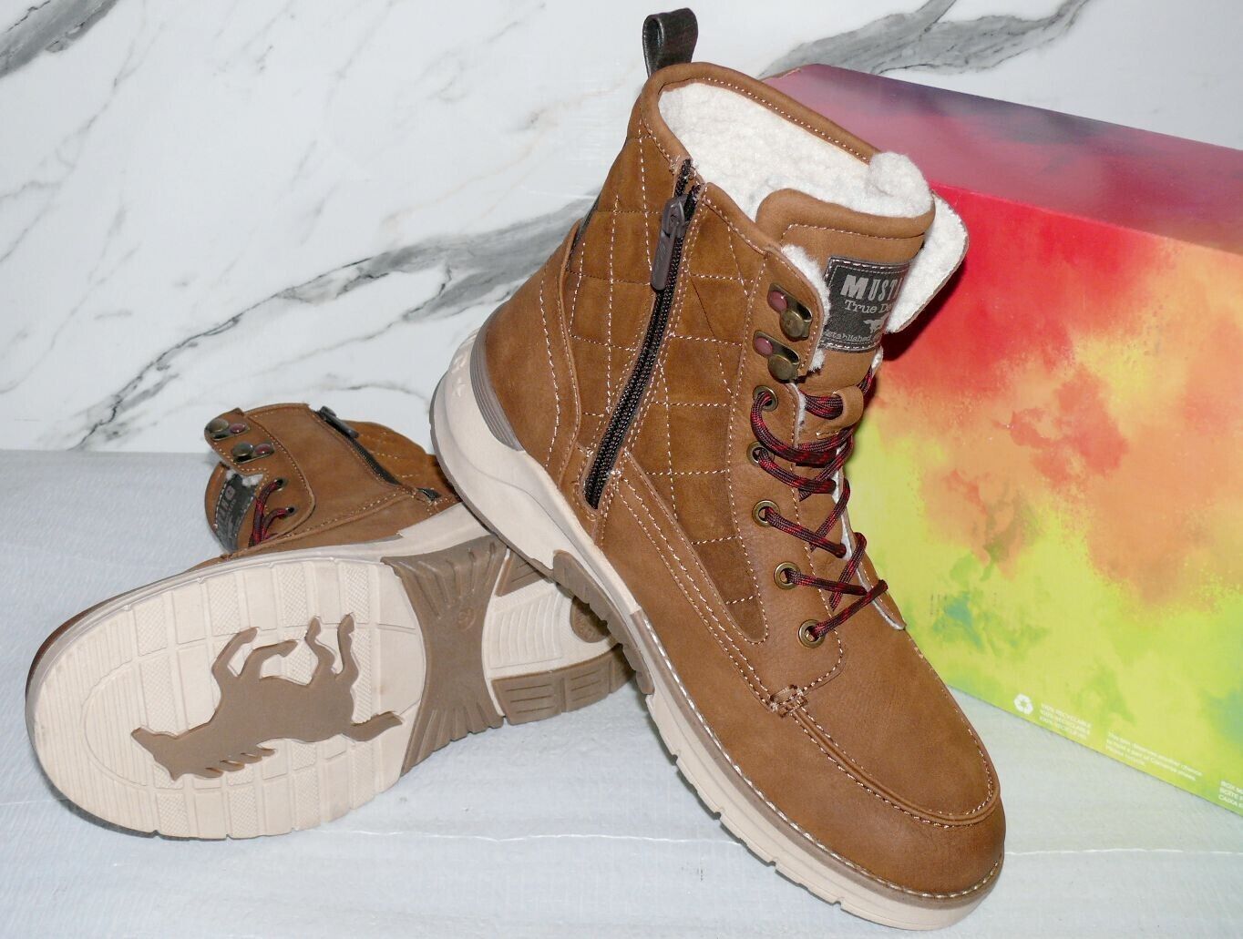 Mustang Warme ZIP Herbst Winter Schuhe Boots Stiefel Futter 42 Braun Natur D36