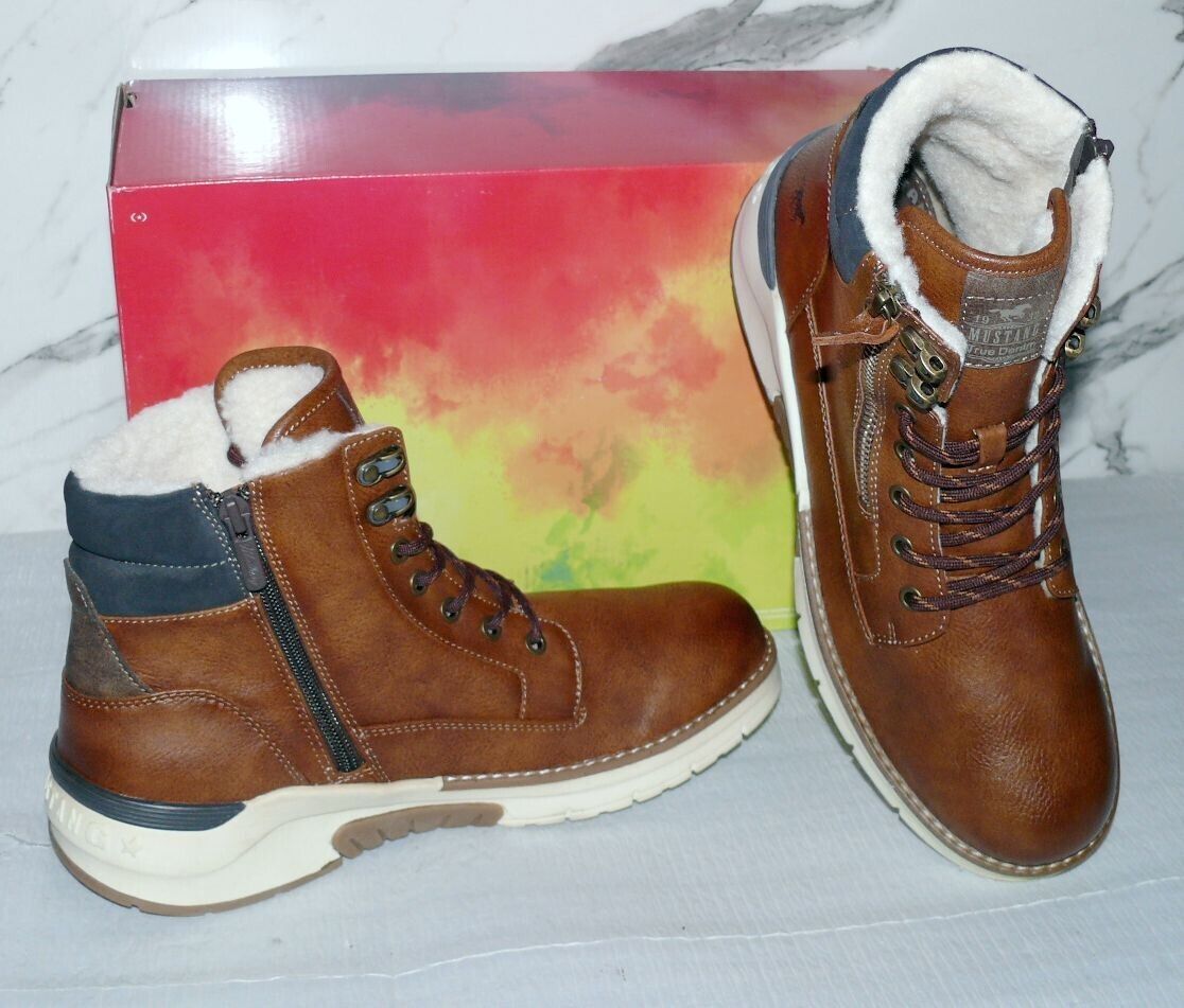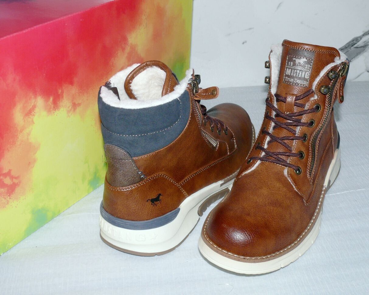 Mustang Warme ZIP Herbst Winter Schuhe Boots Stiefel Futter 42 Braun Natur D37