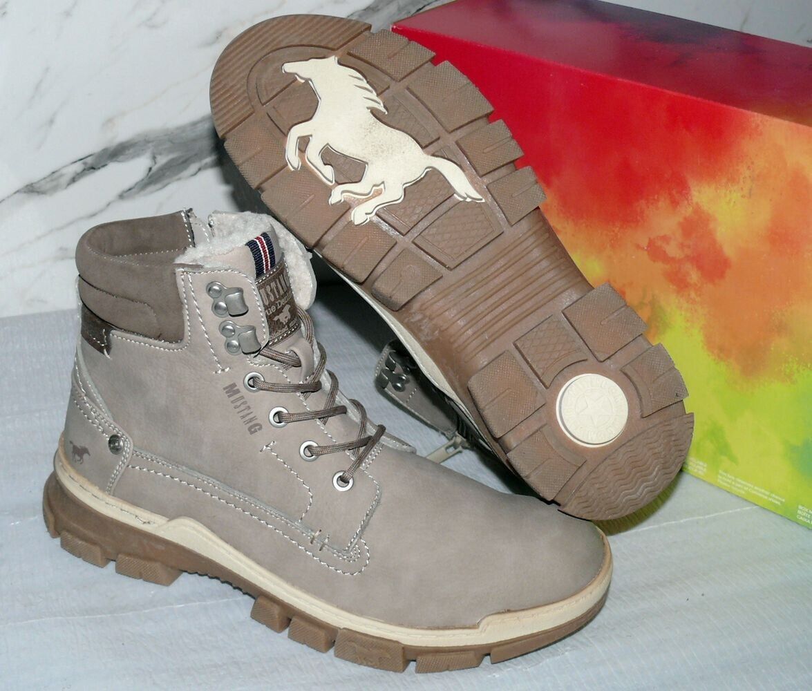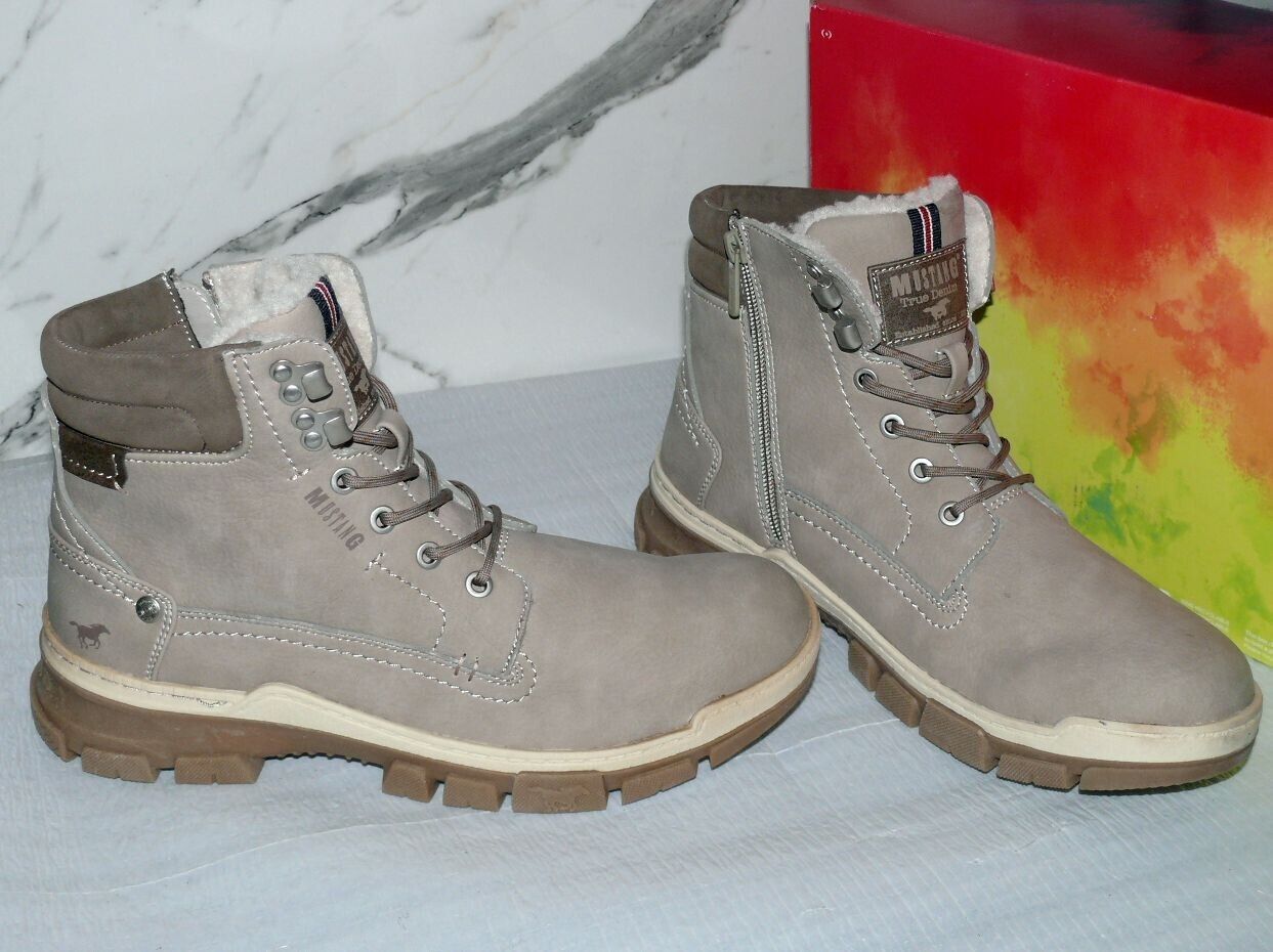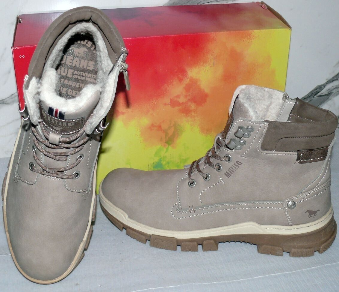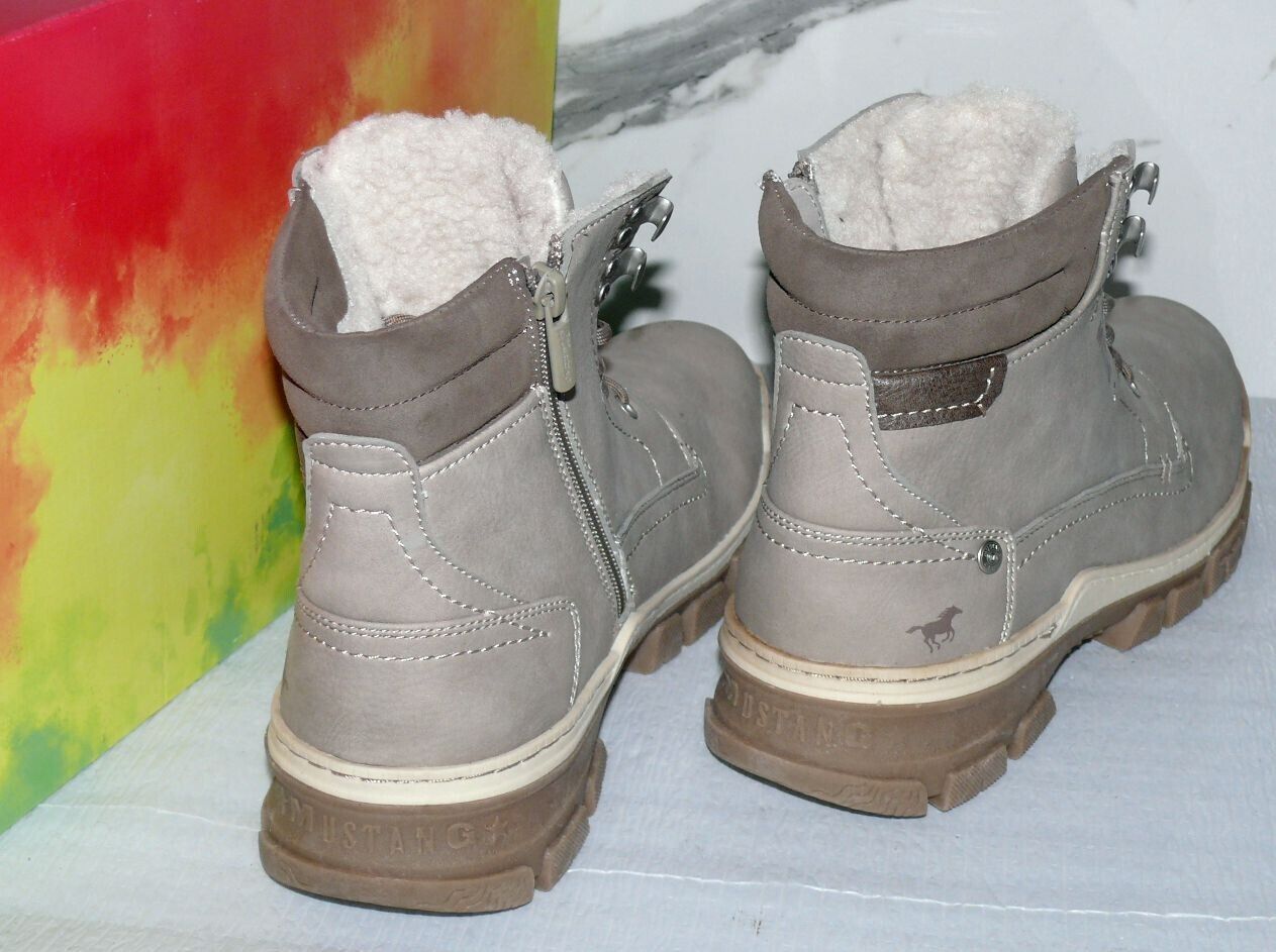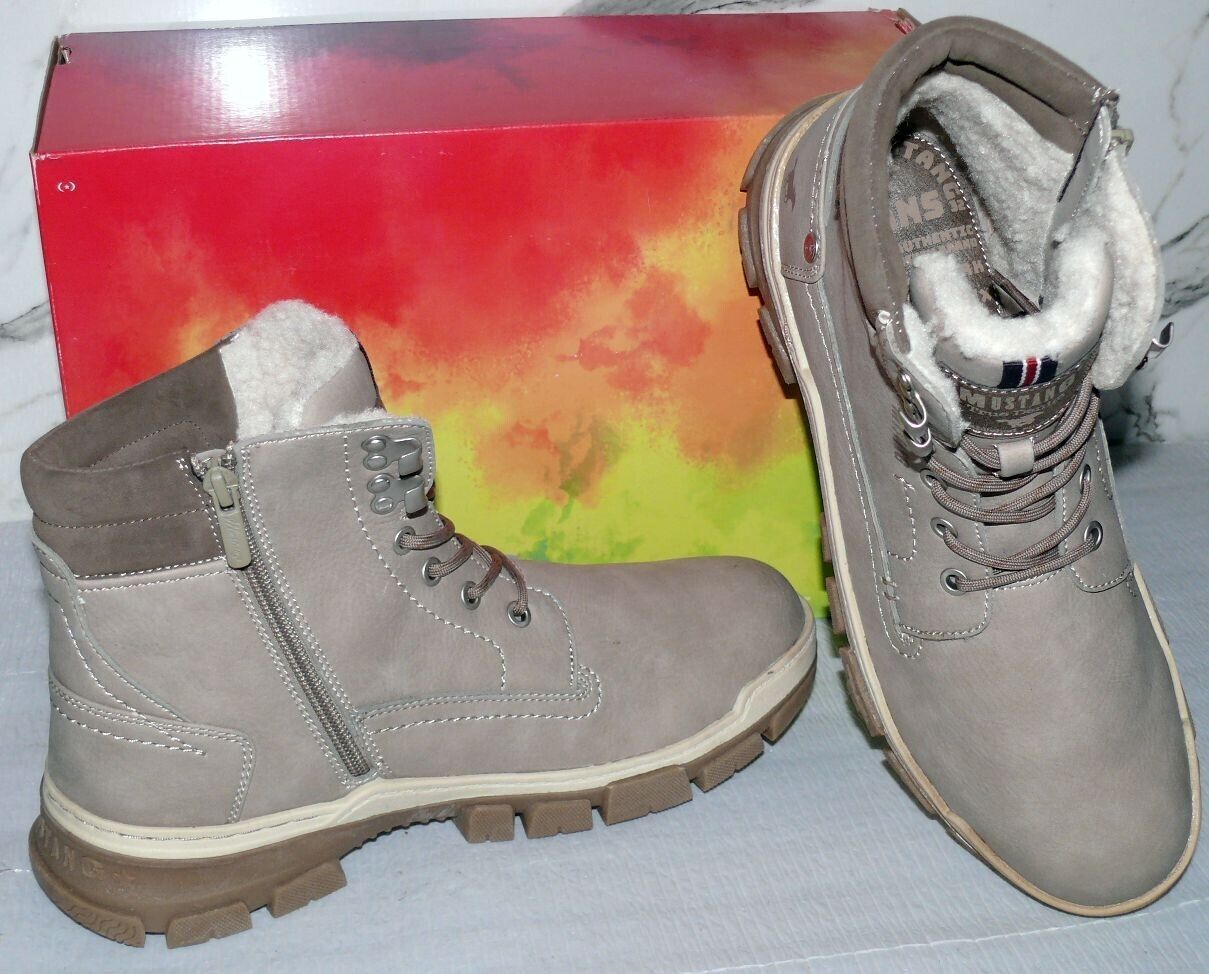 Mustang Warme ZIP Herbst Winter Schuhe Boots Stiefel Futter 42 Grau Natur D39