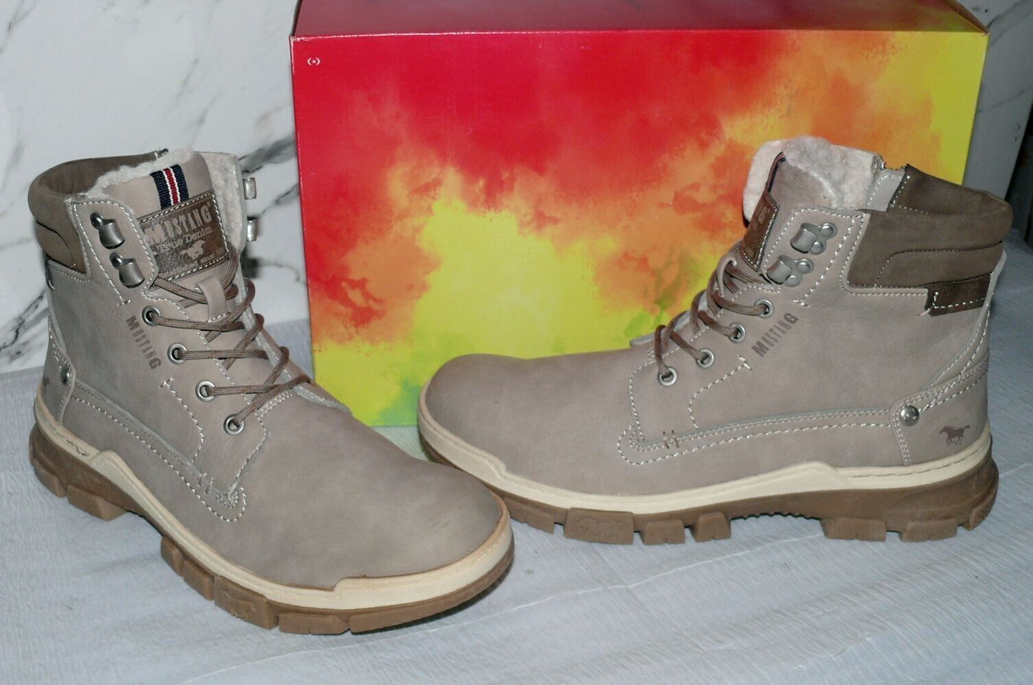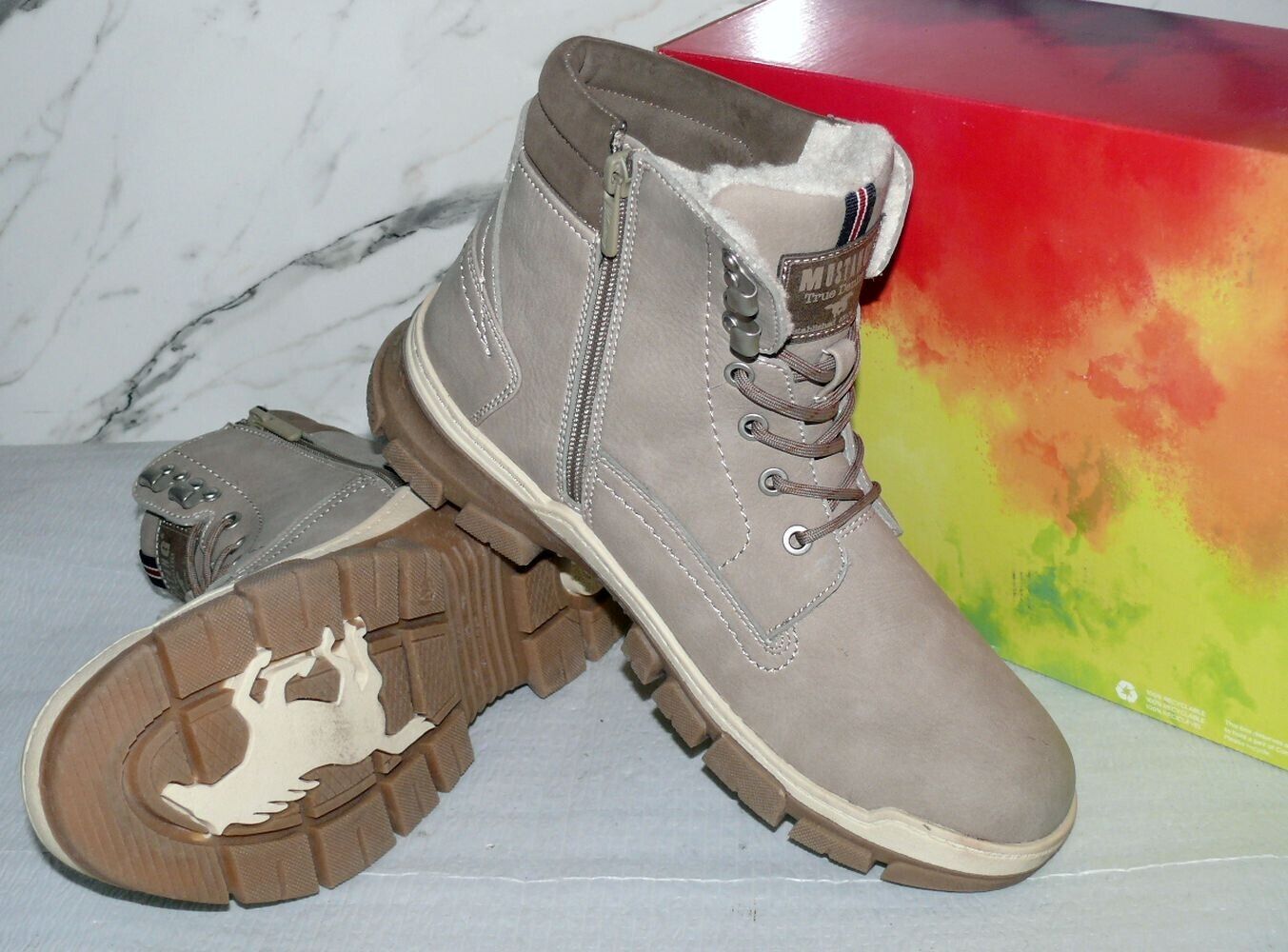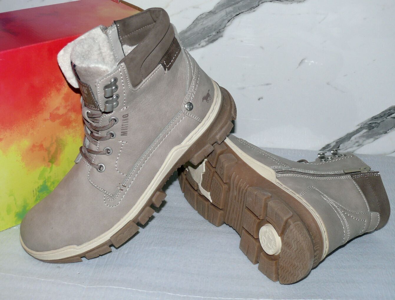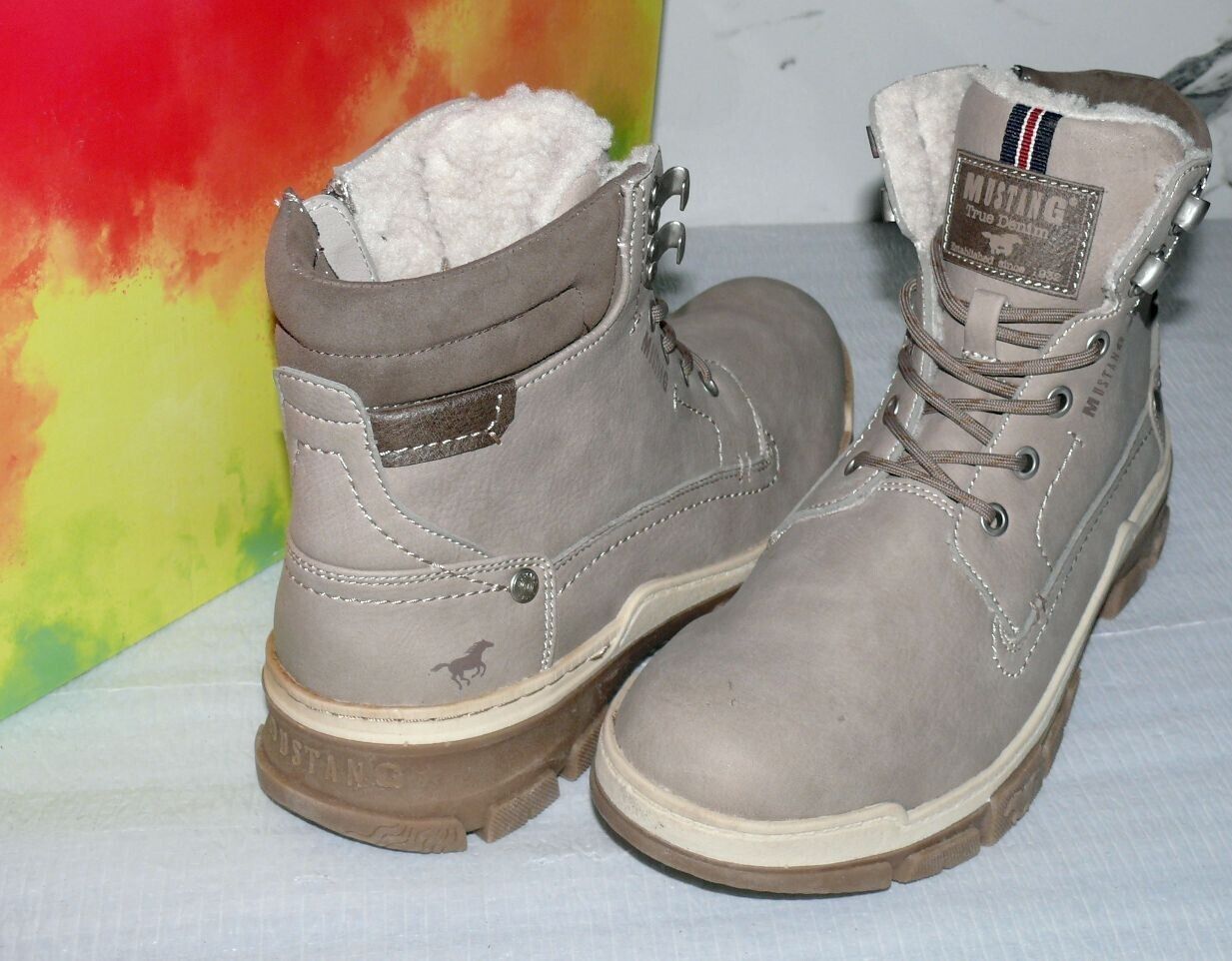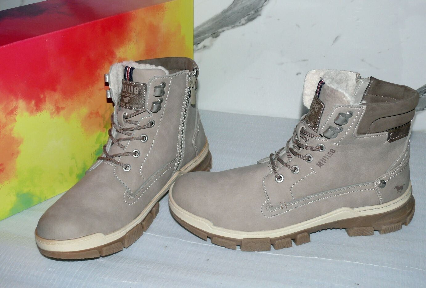 Mustang Warme ZIP Herbst Winter Schuhe Boots Stiefel Futter 42 Grau Natur D39