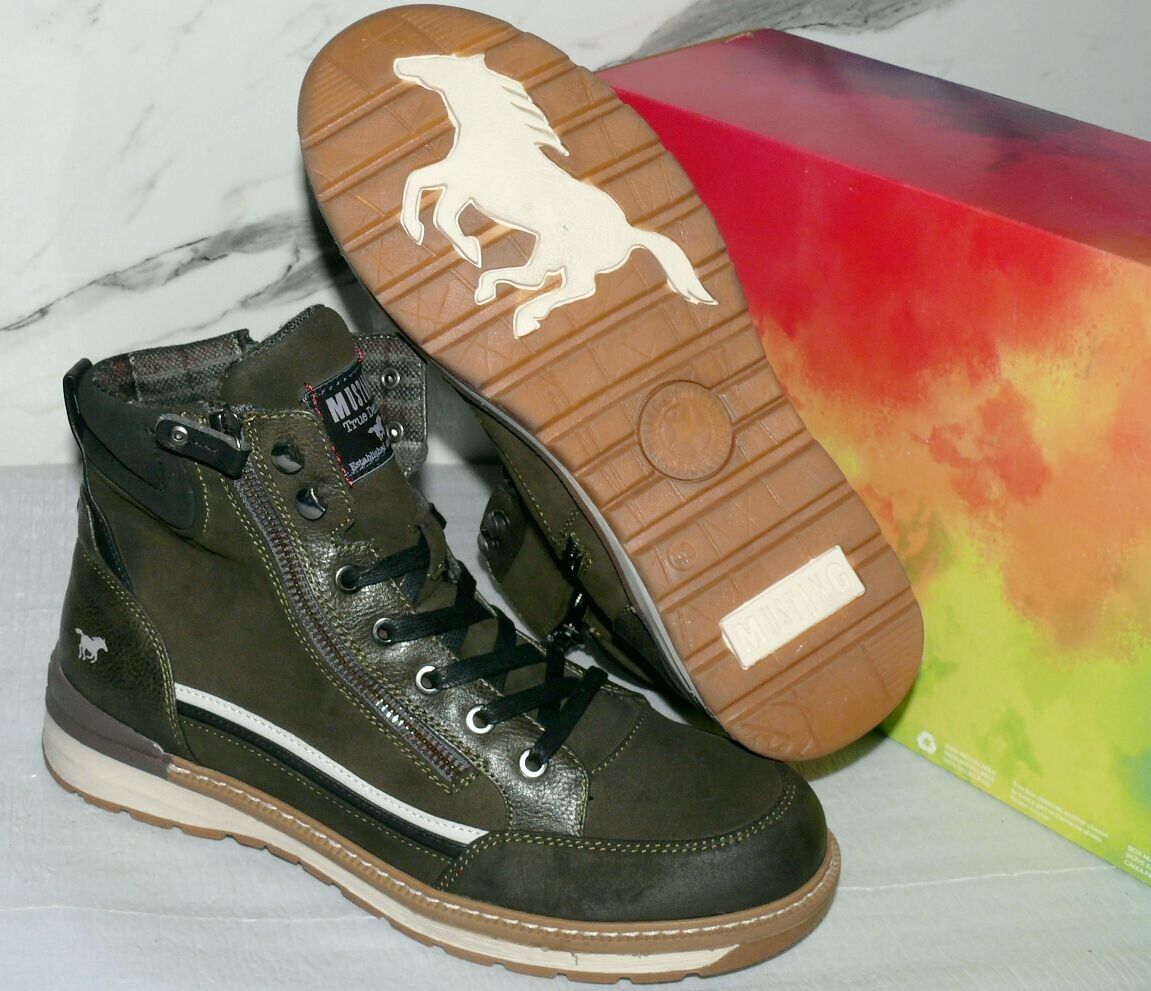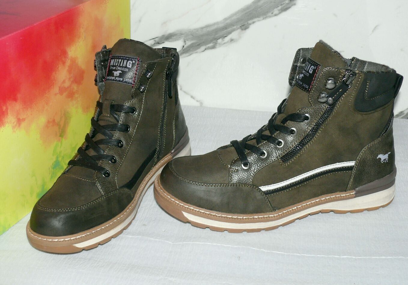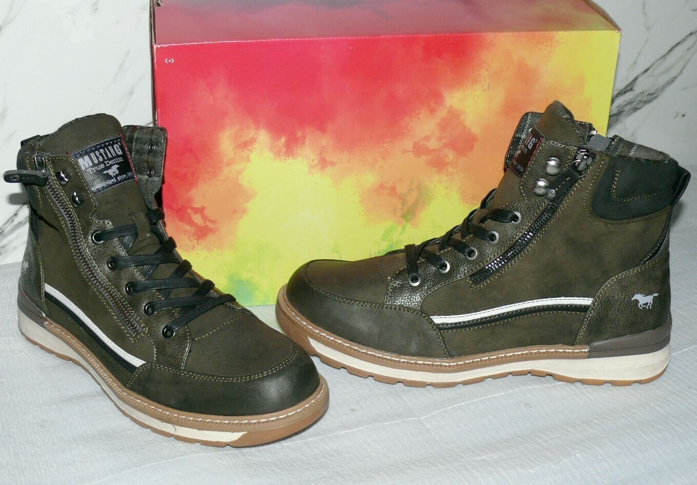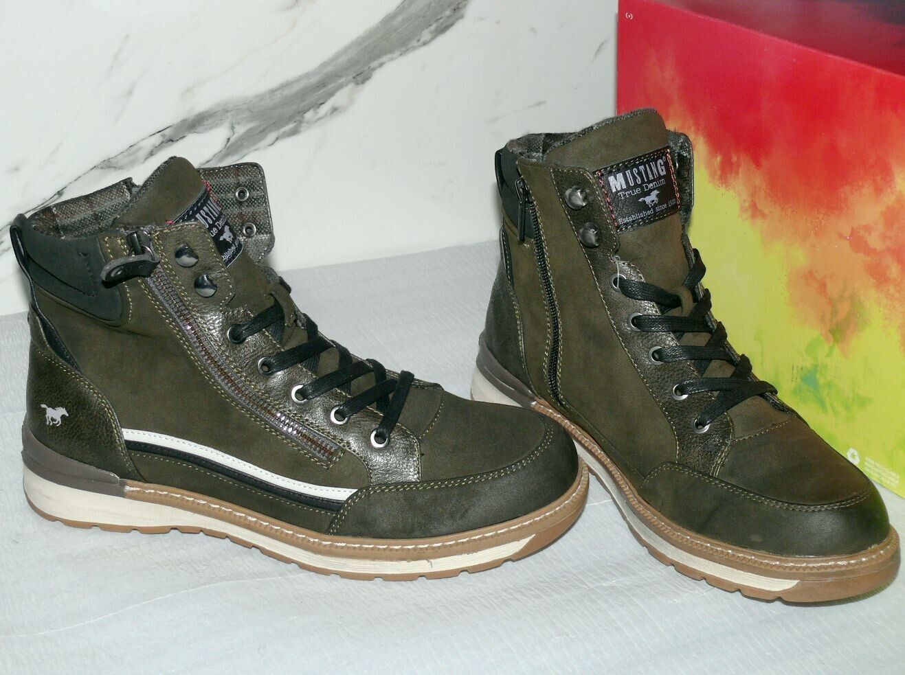 Mustang Warme ZIP Herbst Winter Schuhe Boots Stiefel Futter 42 Militär Grün D40