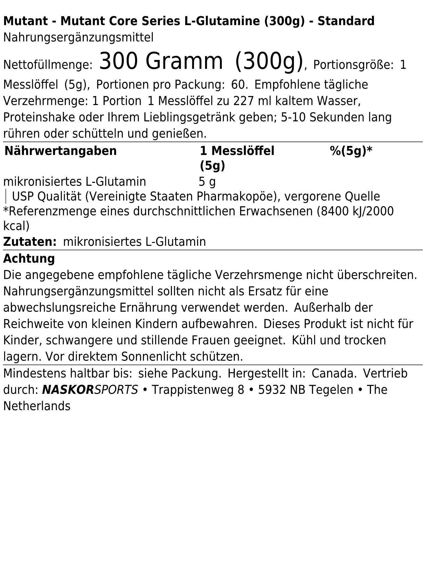 Mutant Mutant Core Series L-Glutamine (300g)