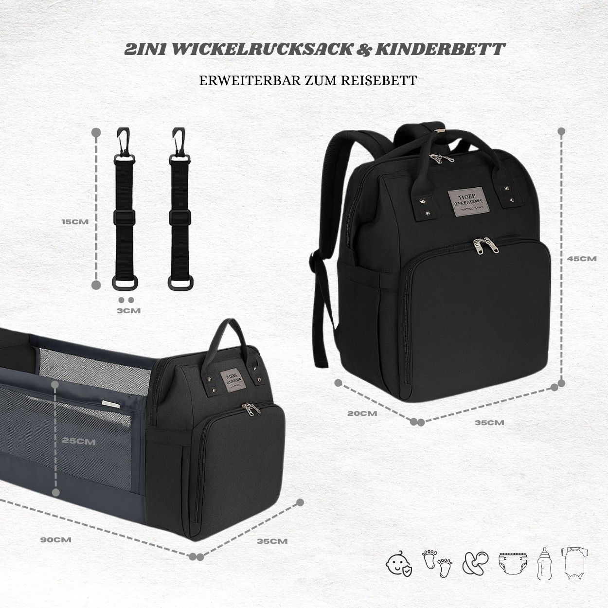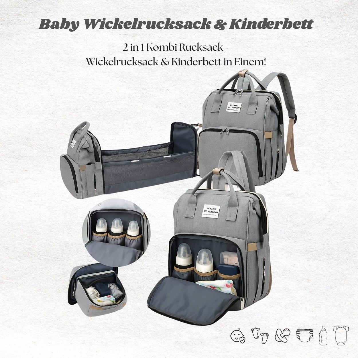 Mutter-Kind Rucksack mit Wickelbett - Tragbar, groß & mit Flaschenfach