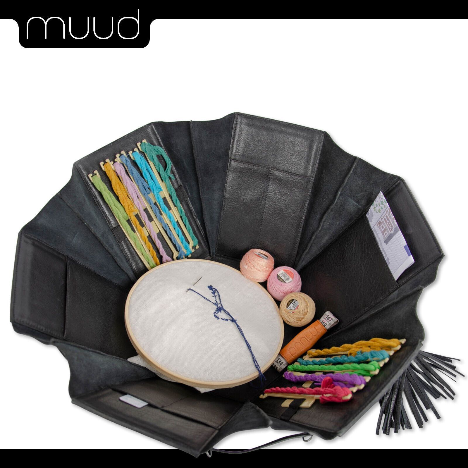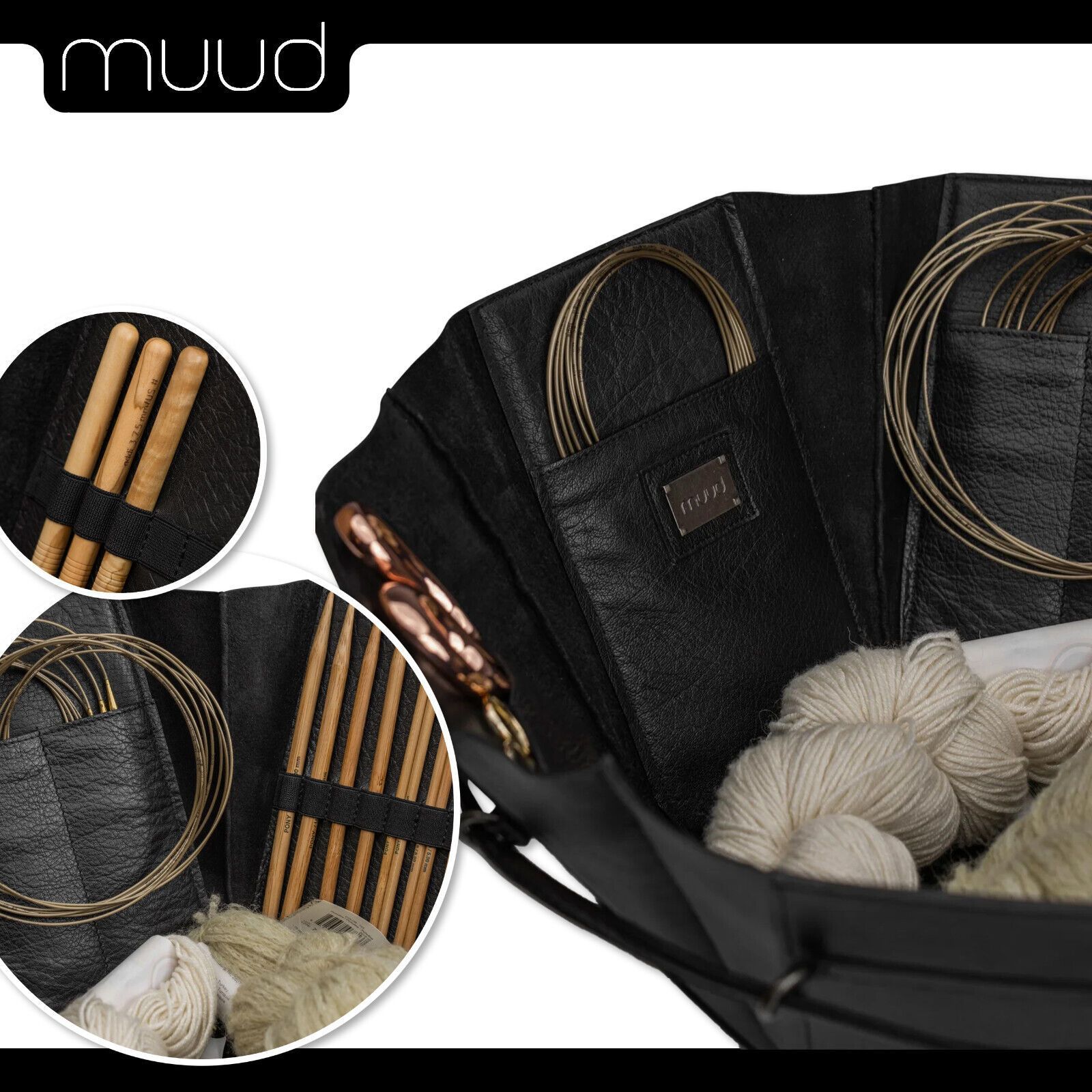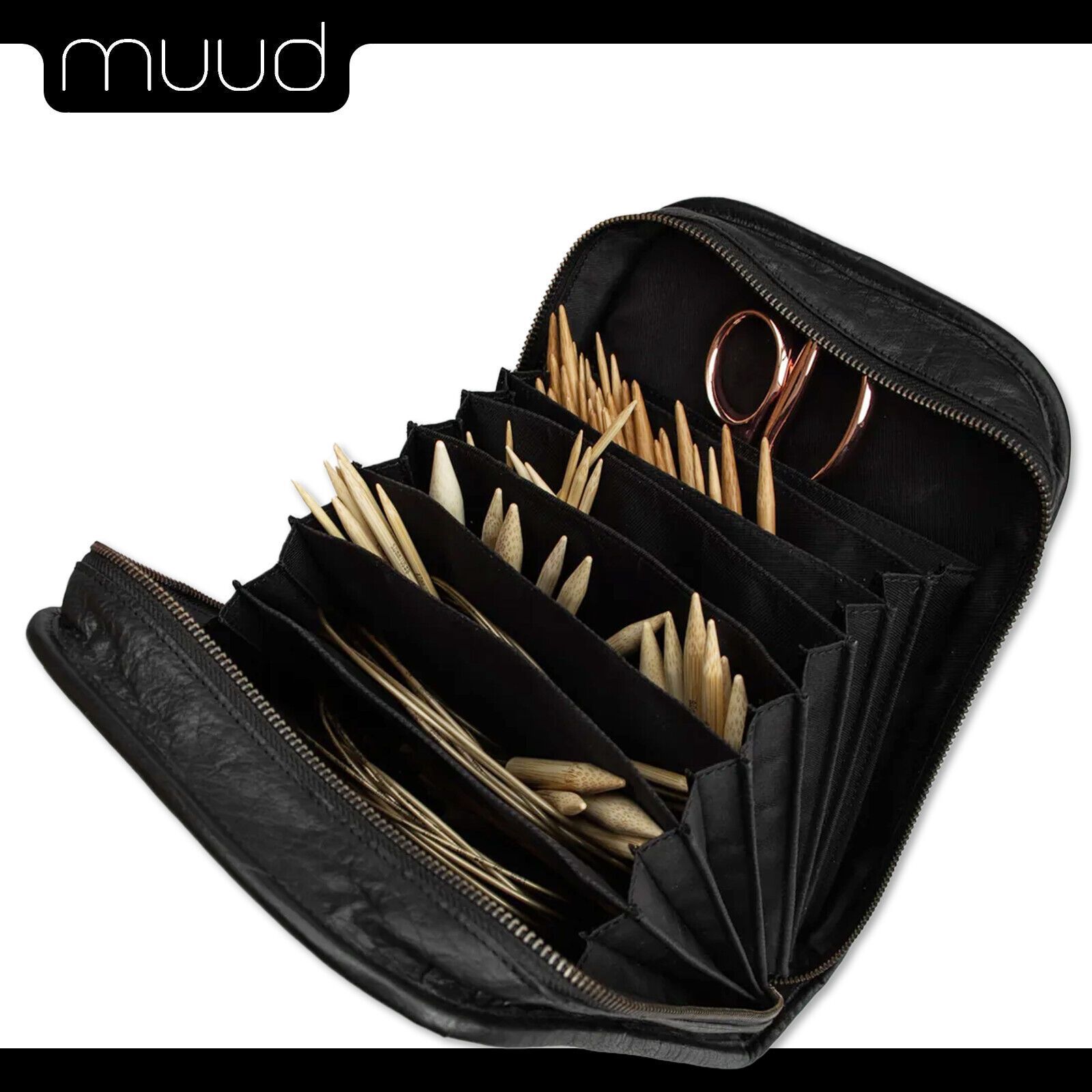muud Lederaccessoires handgefertigt Tasche Etui Strick- und Häkelzubehör Schwarz
