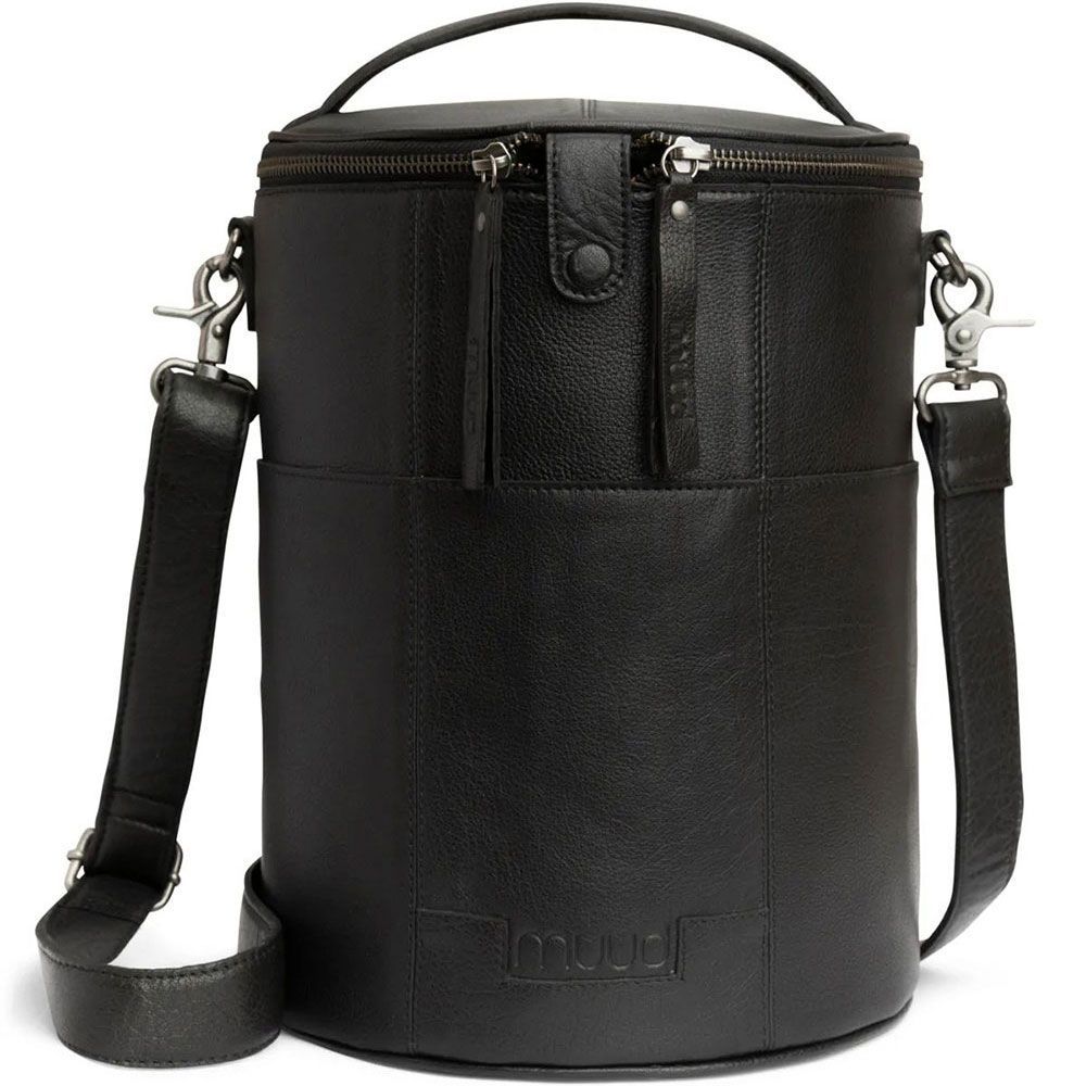 muud Saturn XL Schultertasche aus Leder 28x21 cm in Schwarz