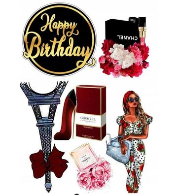 • Happy Birthday Essbar Dame Tortenaufleger Torte Geburstag Zuckermasse + NAME h05