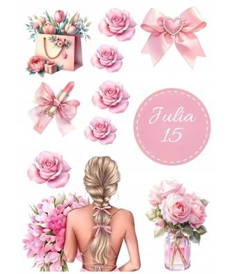 • Happy Birthday Essbar Dame Tortenaufleger Torte Geburstag Zuckermasse + NAME h04