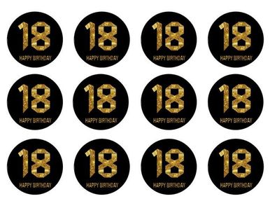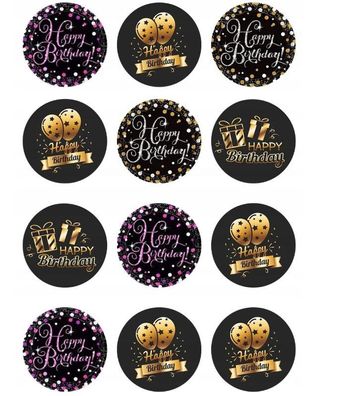 • Happy Birthday Essbar Party 12 Muffin Zuckermasse Tortenbild Tortenaufleger h03