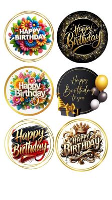 • Happy Birthday Essbar Party 12 Muffin Zuckermasse Tortenbild Tortenaufleger h06