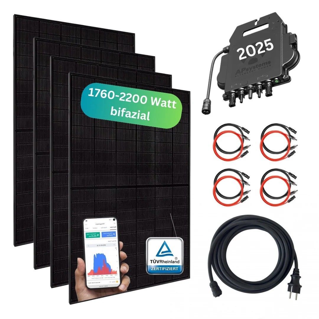 MyBasic 1760+ Watt Balkonkraftwerk Set 4 bifaziale Premiummodule WLAN Wechselrichter