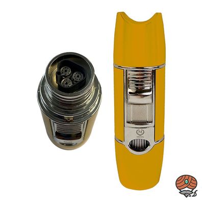 • Myon F60 Zigarren-Feuerzeug mit 3er Jet-Flamme, Racing Edition GELB, Bohrer