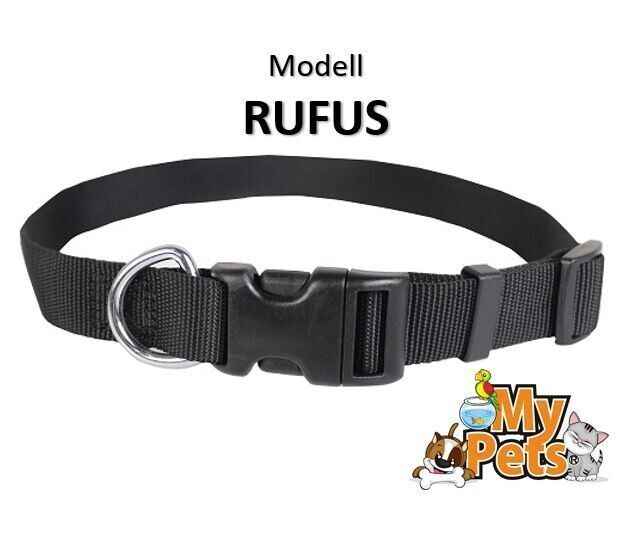 MyPets® Hundehalsband RUFUS Nylon Halsband Hunde Größe L + XL Hunde Band Schwarz