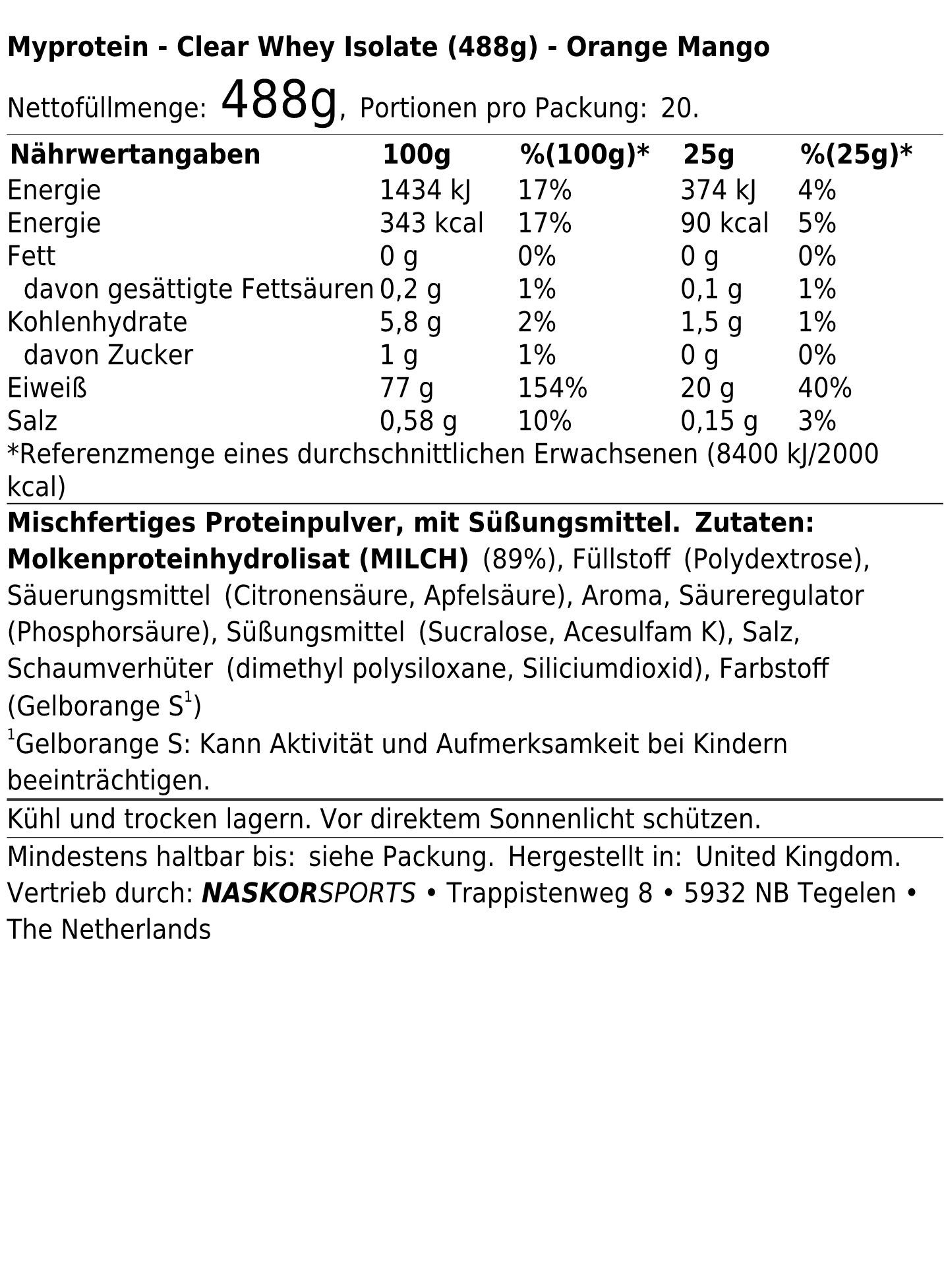 Myprotein Myprotein Clear Whey Protein (488g) Orange Mango