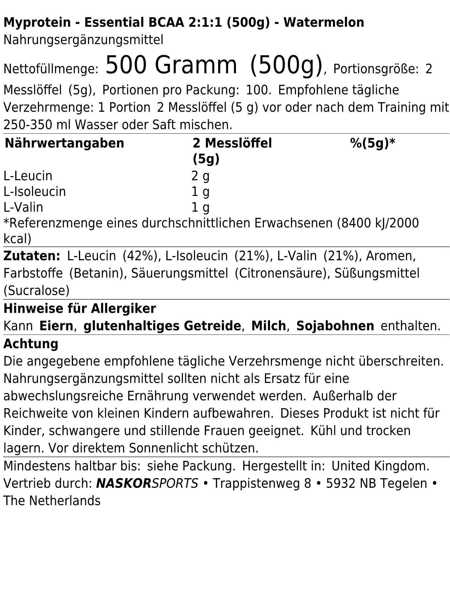 Myprotein Myprotein Essential BCAA 2:1:1 (500g) Watermelon