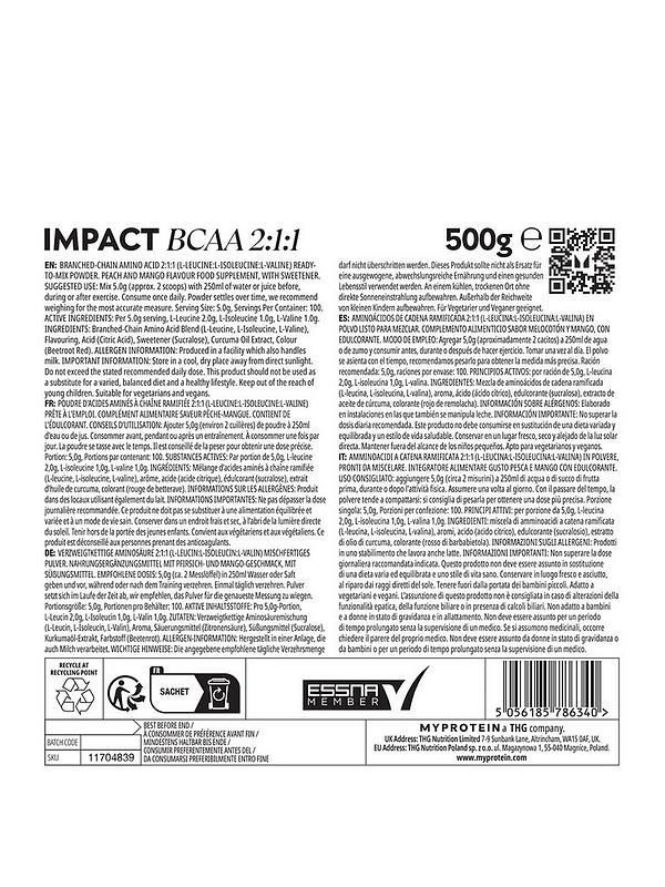 Myprotein Myprotein Impact BCAA 2:1:1 500g / 100 serv + 500g / 100 serv Unflavoured + ve Proben