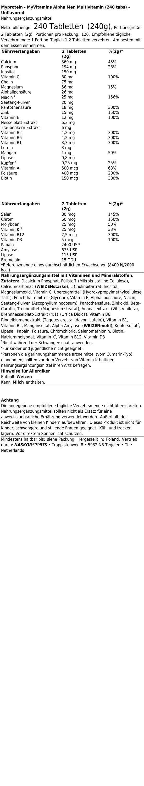 Myprotein Myprotein MyVitamins Alpha Men Multivitamin (240 tabs) Unflavored