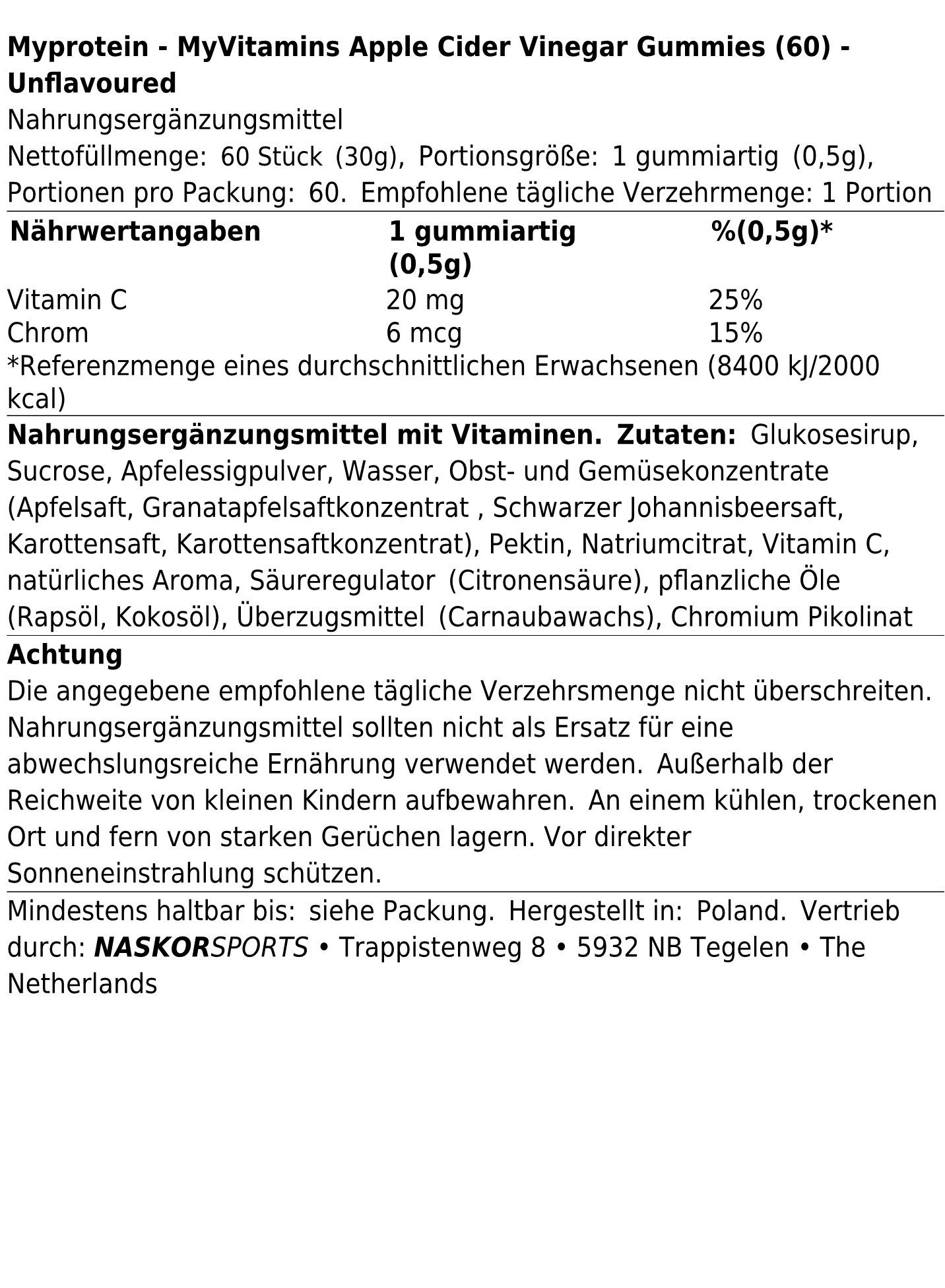 Myprotein Myprotein MyVitamins Apple Cider Vinegar Gummies (60)