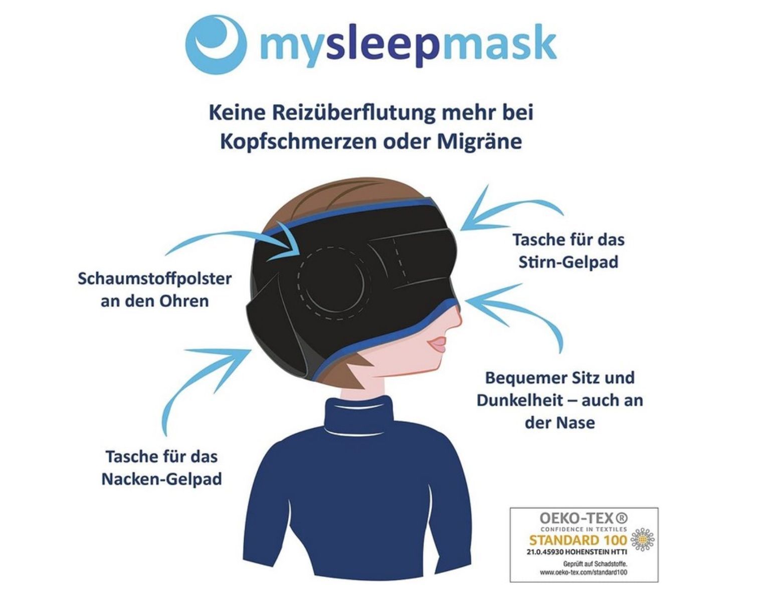 Mysleepmask 54 -58 cm S/ M Schlafmaske Gesichtsmaske Augenmaske Augenmaske