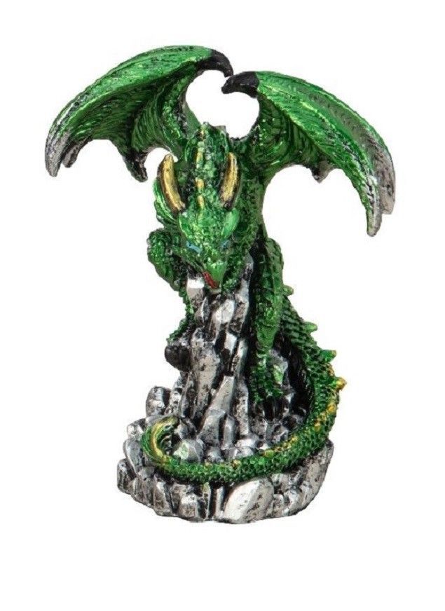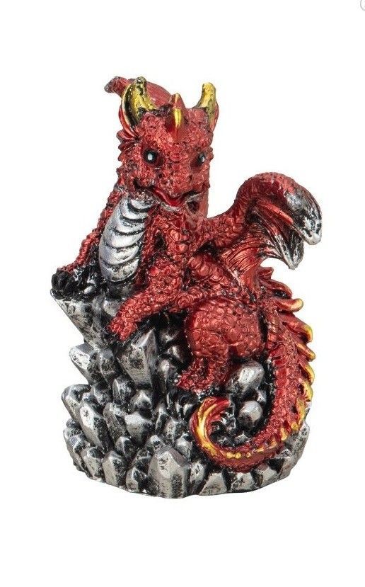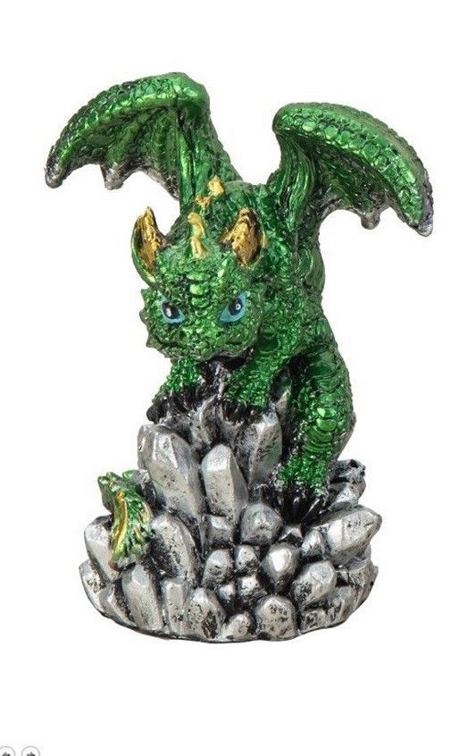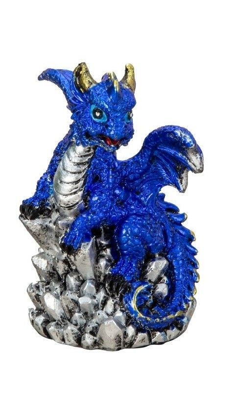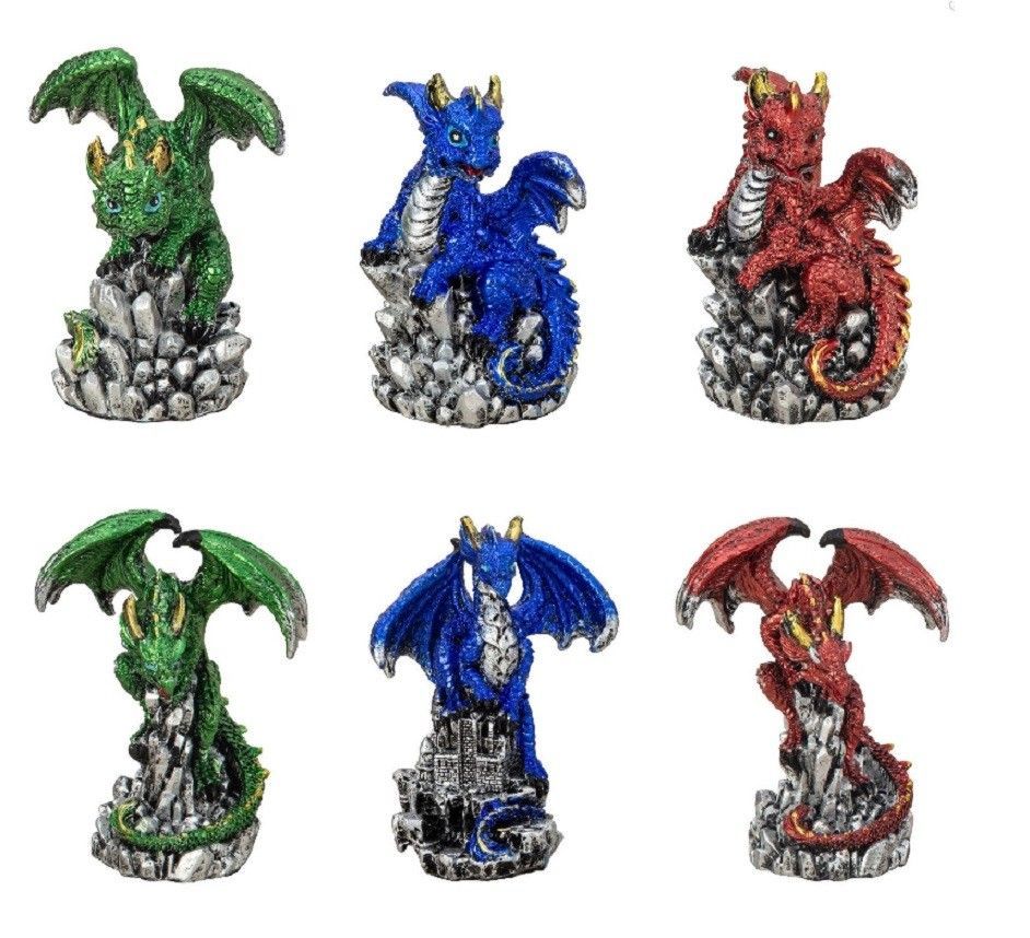 Mystisch und Spirituell - Dekofigur Drachen mit Kristallen, Höhe 8,0 - 9,0 cm