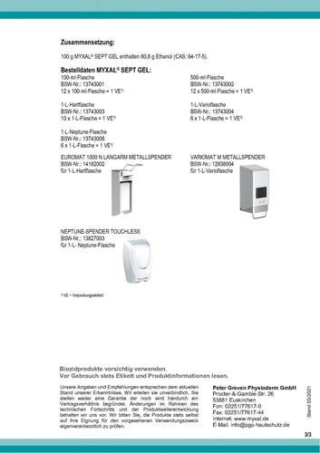 MYXAL® - Desinfektionsgel voll-viruzid - SEPT GEL - 100 ml - Kittelflasche