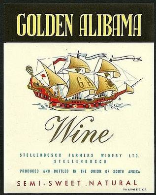 ALT ! Weinetikett "Golden Alibama" Stellenbosch Farmers Winery Ltd. Südafrika