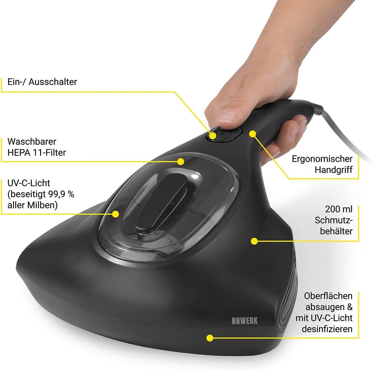 N8WERK Milbensauger Midnight Black Edition Matratzenreiniger starke Saugkraft