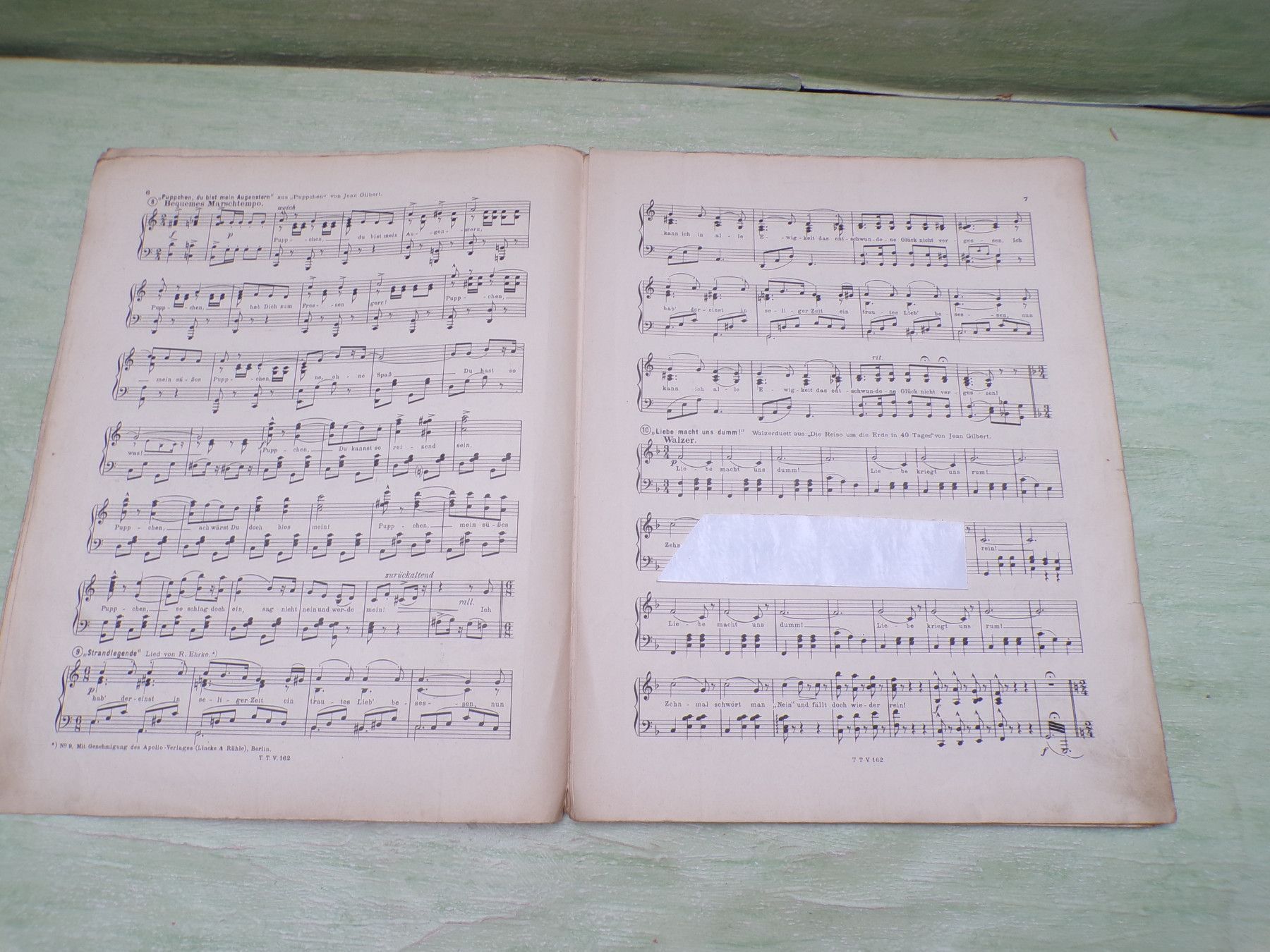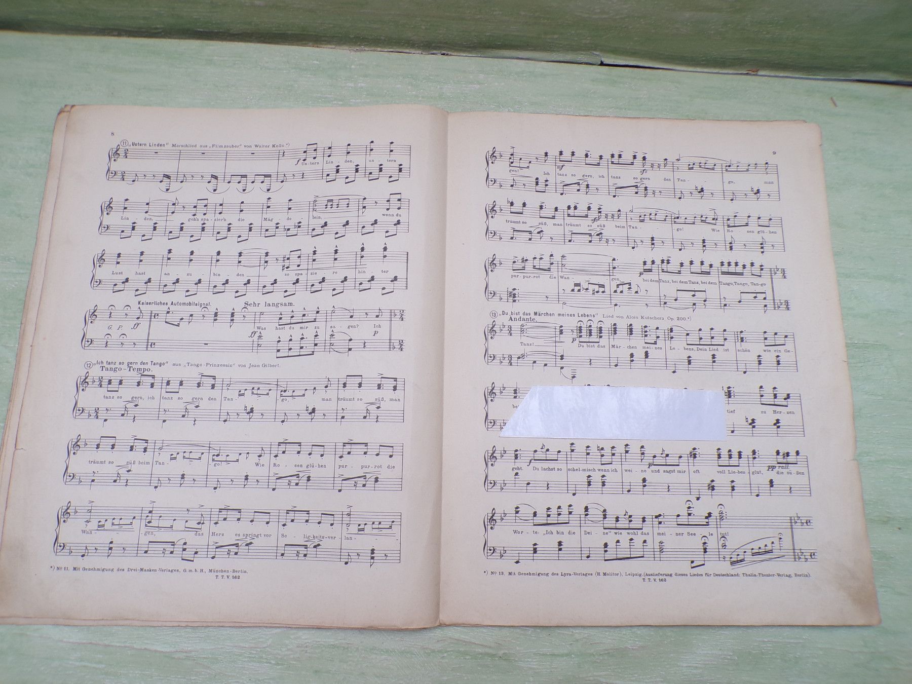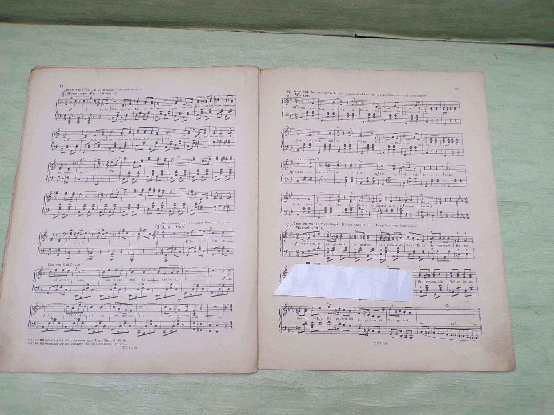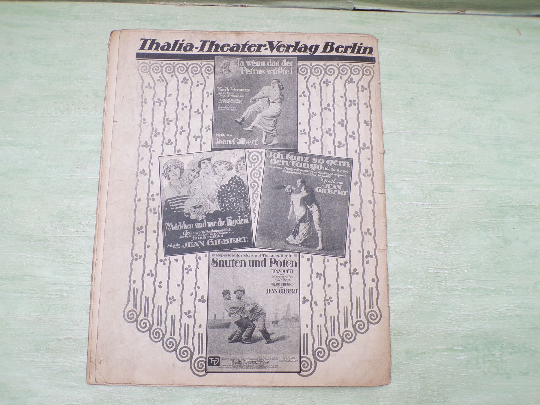 ... Erinnerungen ..... ...na, denn man los ! . Ein Nachtbummel durch Berlin . Großes Potpourri zum Mitsingen von Ernst Urbach . Copyright 1913 by Thalia Verlag , Berlin TTV162 . ca 34 x 27 cm 16 Seiten Notenheft mit Text . Zustand : Heftrücken beschädigt, Seiten altersentsprechend gut(+) . . desweit