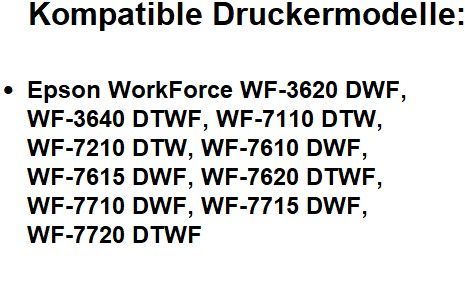 Zum Nachfüllen der Patronen der Drucker Epson WorkForce WF-3620DWF, WF-3620WF, WF-3640DTWF, WF-7110DTW, WF-7210DTW, WF-7610DWF, WF-7615DWF, WF-7620DTWF, WF-7710DWF, WF-7715DWF, WF-7720DTWF