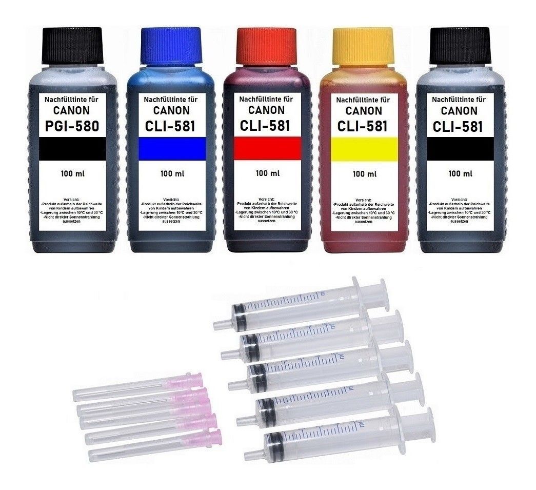 Nachfüllset für Canon Tintenpatronen PGI-580 + CLI-581 - 5 x 100 ml Nachfülltinte