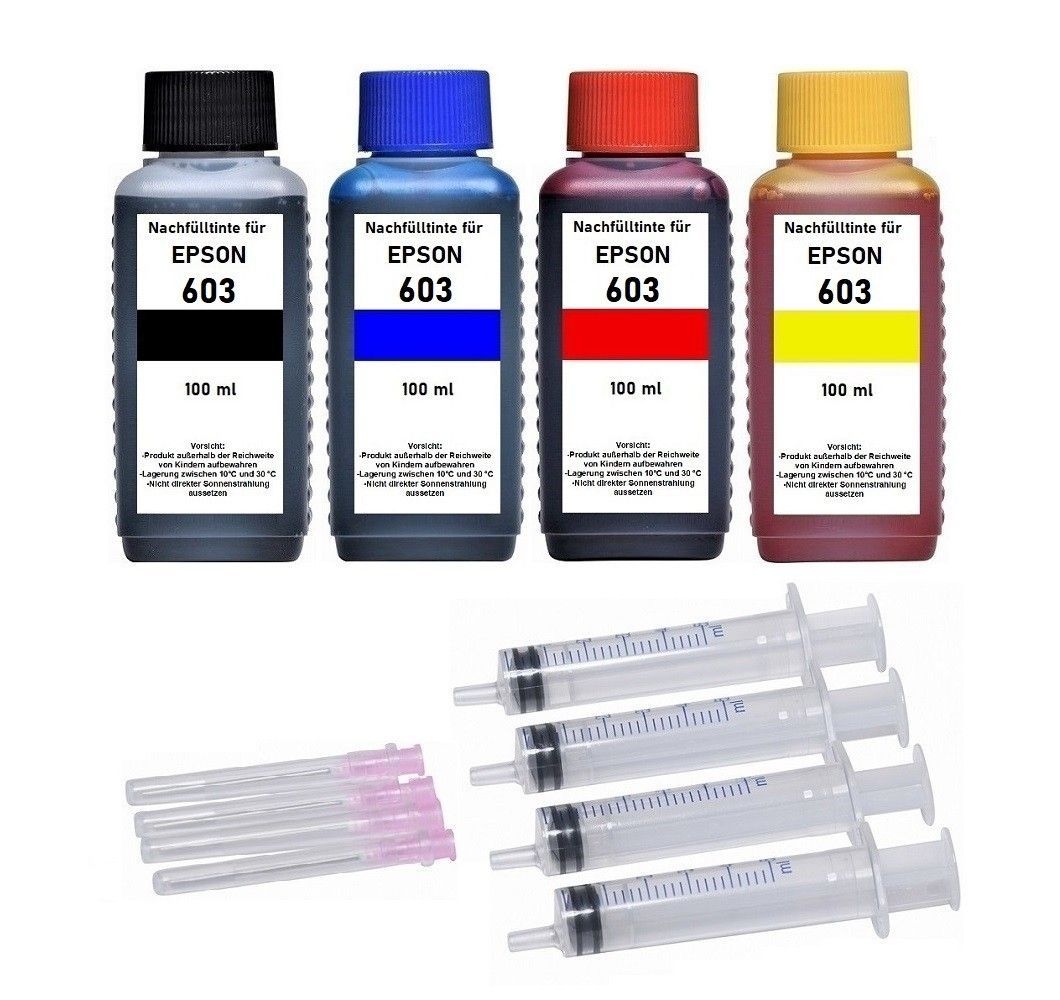 400 ml Nachfülltinte + Zubehör zum Befüllen der Tintenpatronen Epson 603 (XL) (Seestern-Serie)