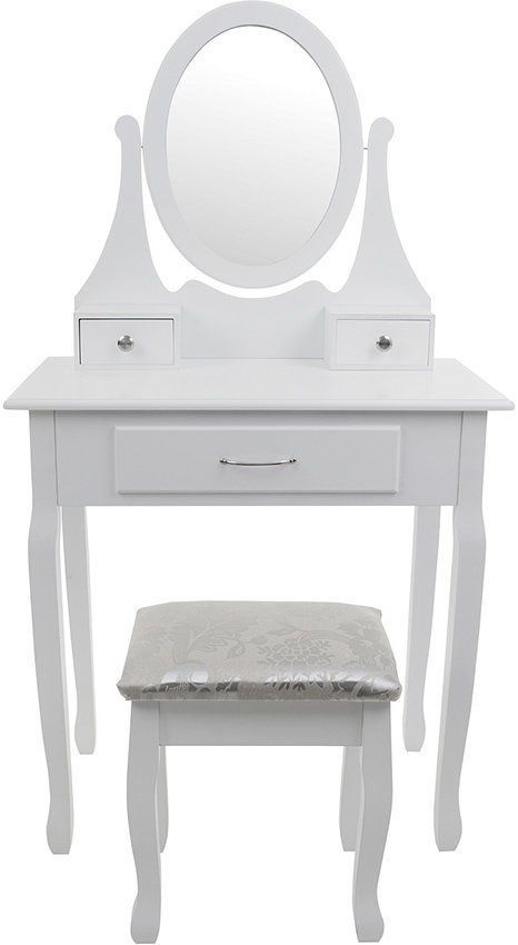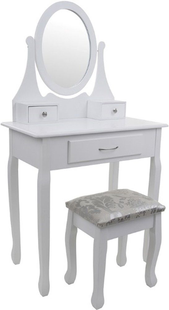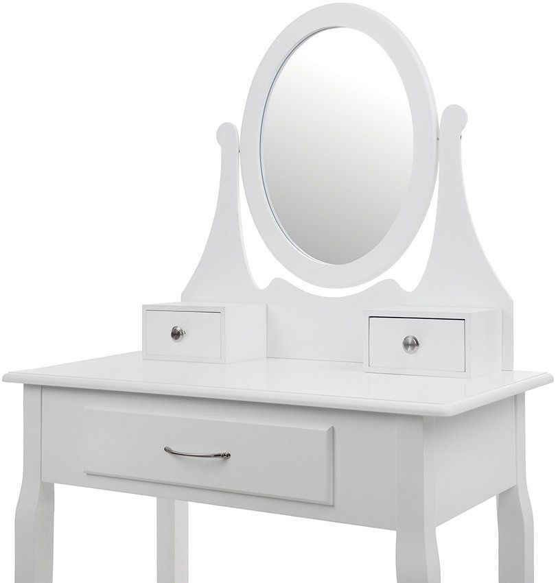 Nachhaltiger weißer Schminktisch aus Kiefernholz und MDF - Mit passendem Hocker