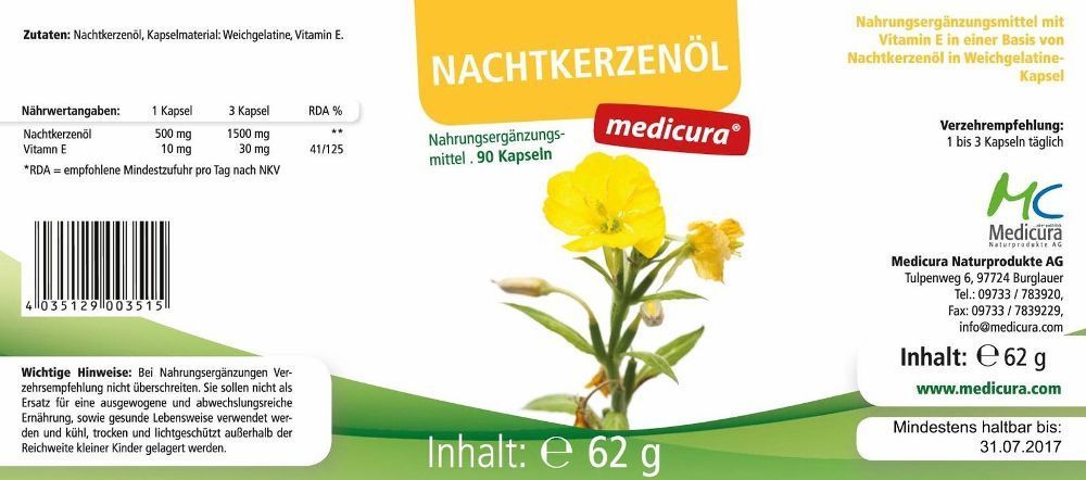 Medicura Nachtkerzenöl 500 mg - 90 Kapseln
