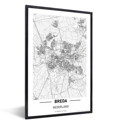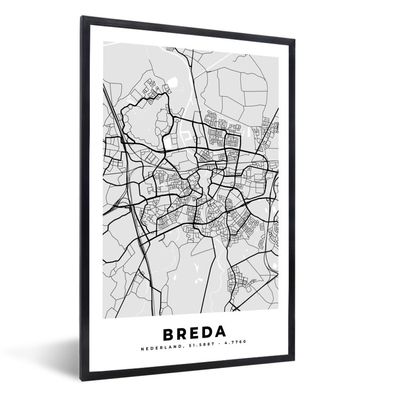 Poster - 60x90 cm - Karte - Breda - Schwarz - Weiß