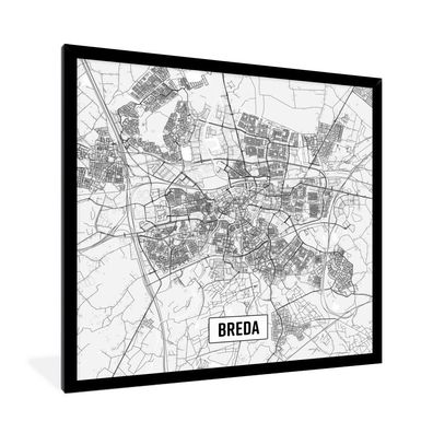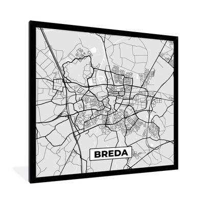 Poster - 40x40 cm - Stadtplan - Breda - Grau - Weiß