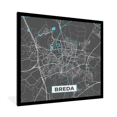 Poster - 40x40 cm - Stadtplan - Breda - Grau - Blau