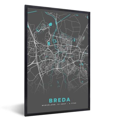 Poster - 60x90 cm - Karte - Breda - Grau - Blau