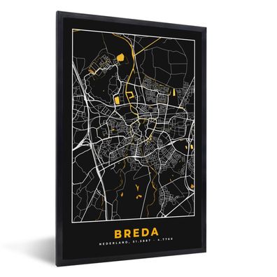 Poster - 60x90 cm - Karte - Breda - Gold - Schwarz