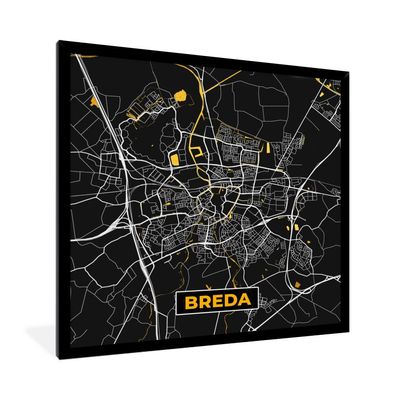 Poster - 40x40 cm - Karte - Breda - Gold - Schwarz