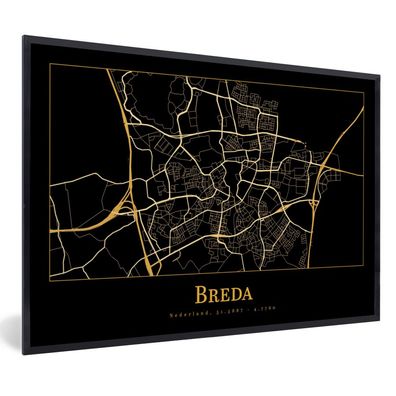 Poster - 90x60 cm - Karte - Breda - Gold - Schwarz