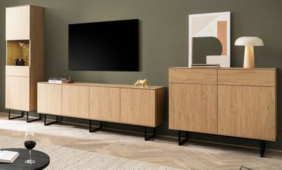 • Wohnwand "Breda" in Stone Eiche Wohnkombination 3-teilig 400 cm, mit Push-to-Open