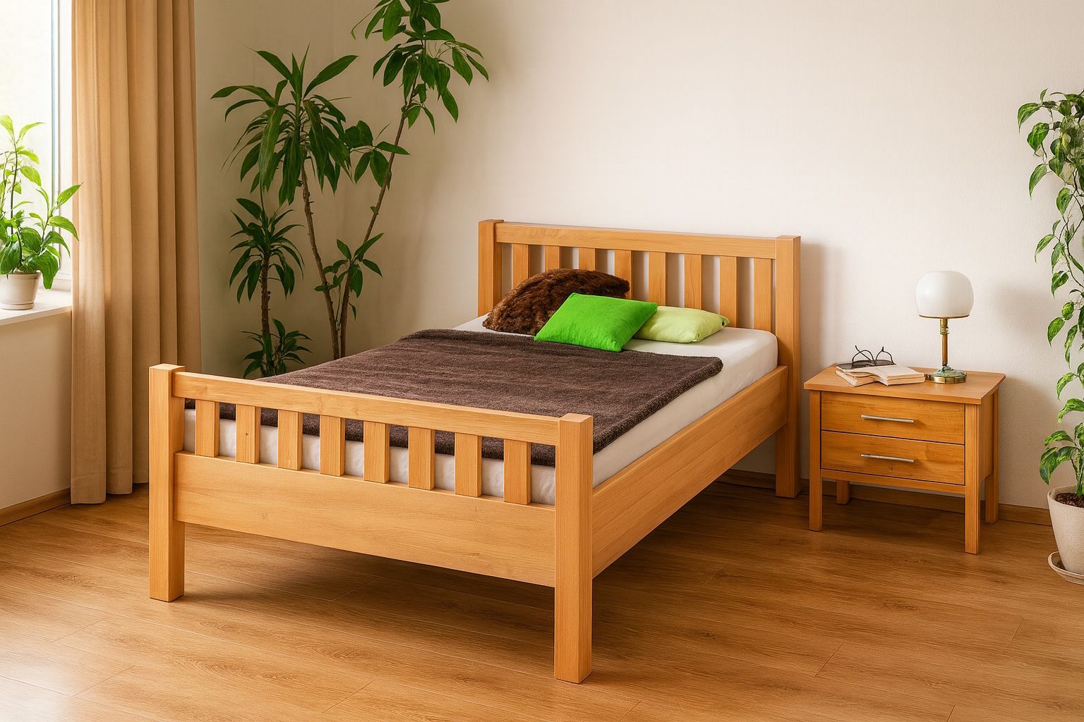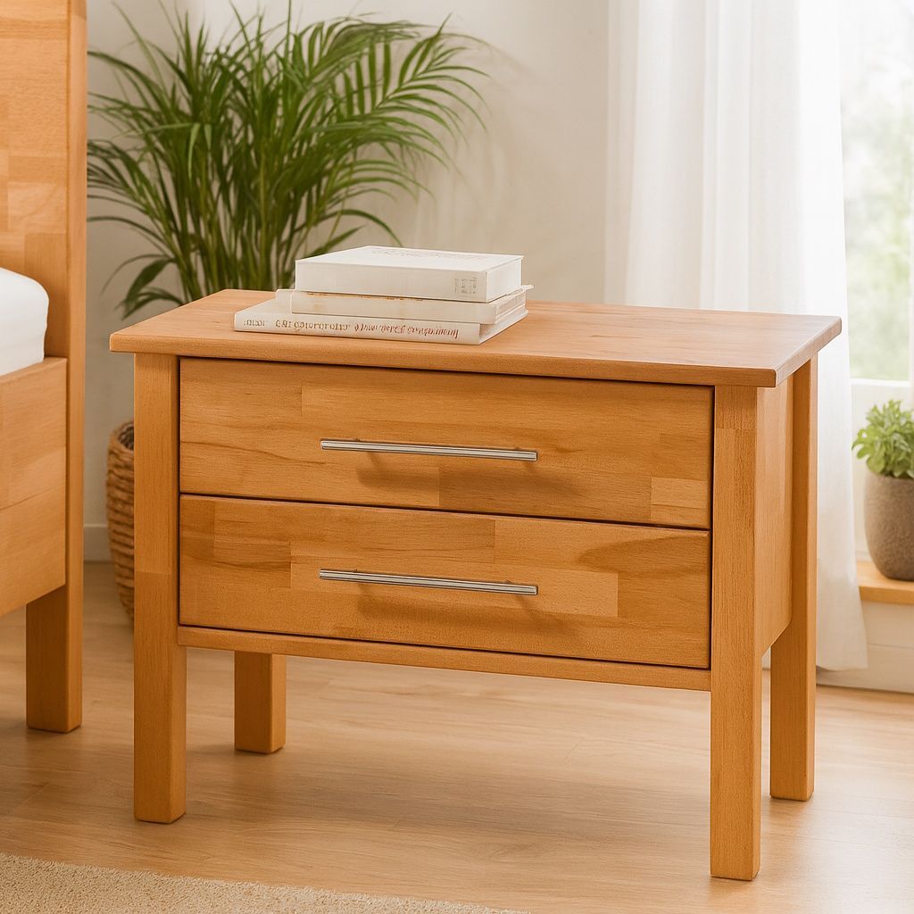 Nachtkonsole Kernbuche Nachtschrank Schubladen auf Metallschiene #2675