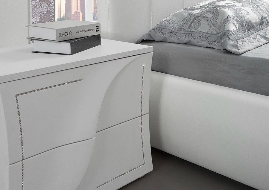 Im Lieferumfang enthalten: Aus dem modernen Schlafzimmer Mabel in weiss 2x Nachtkonsole mit je 2 Schubkästen auf Metallschienen Maße ca.: B H T: 59 x 49 x 42 cm Produktinformation: Farbe: Weiss Hochglanz lackiert Materialstärke: 18 mm Spanplatte pflegeleichte hochglanz Oberfläche Die Ware wird zerle