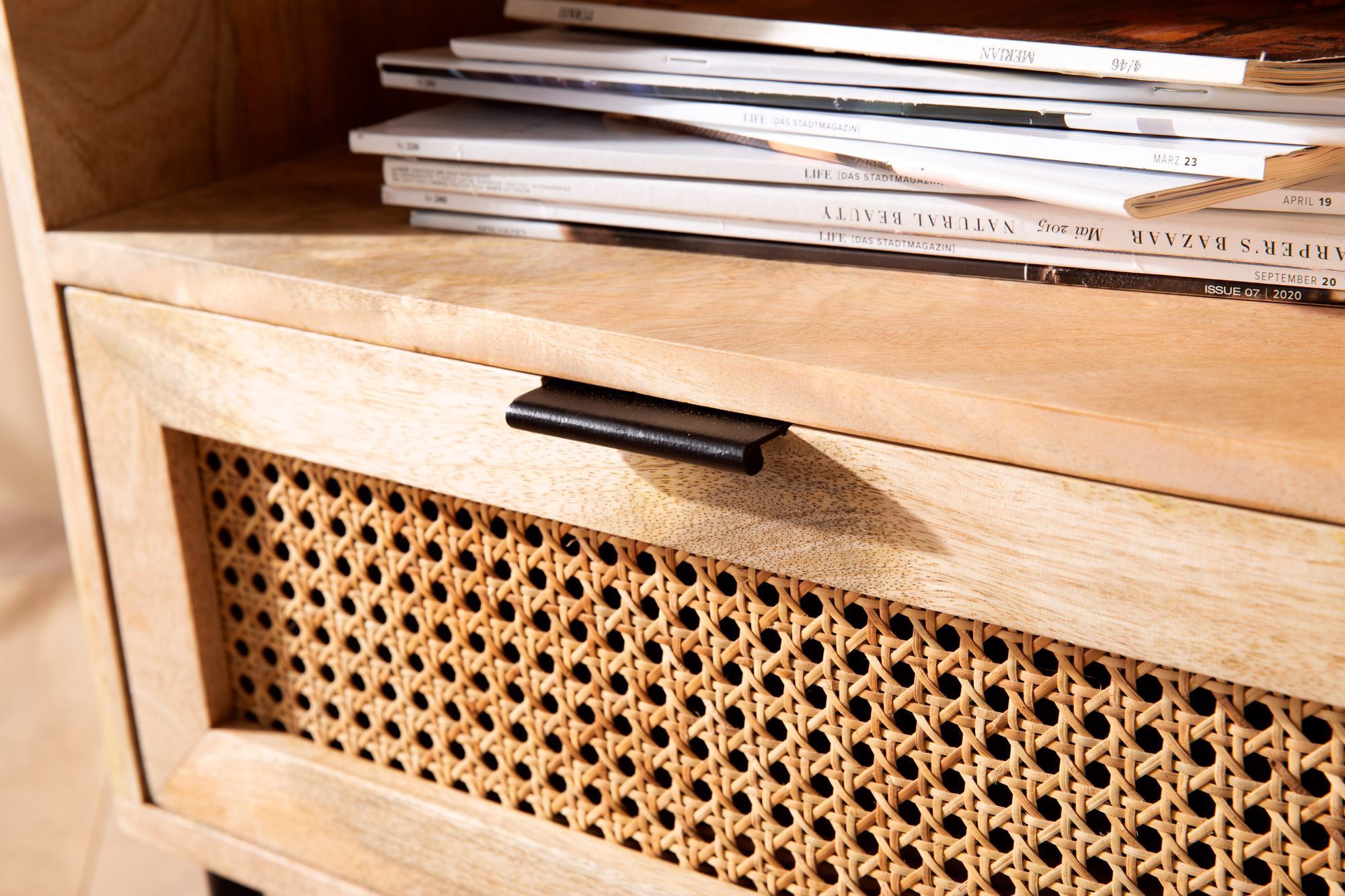 FineBuy Nachtkonsole Massivholz Rattan Nachttisch Schublade Ablage Nachtkästchen BOHO
