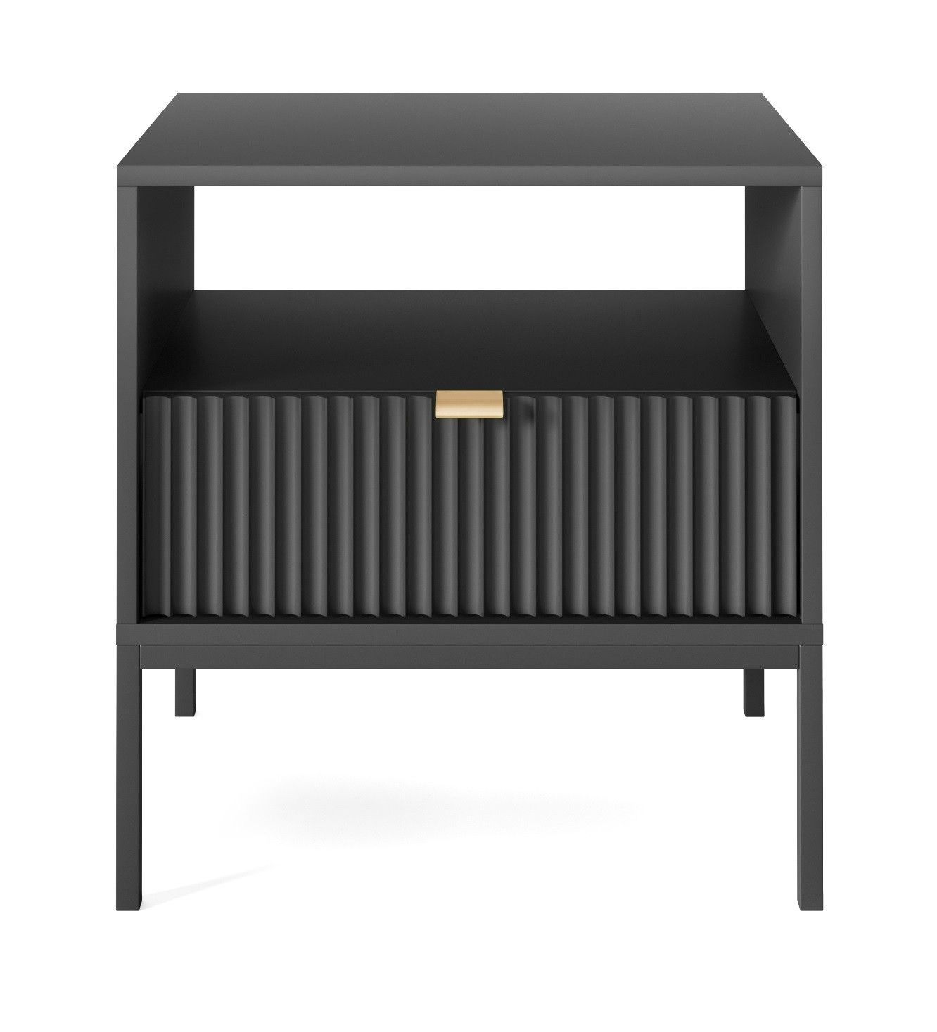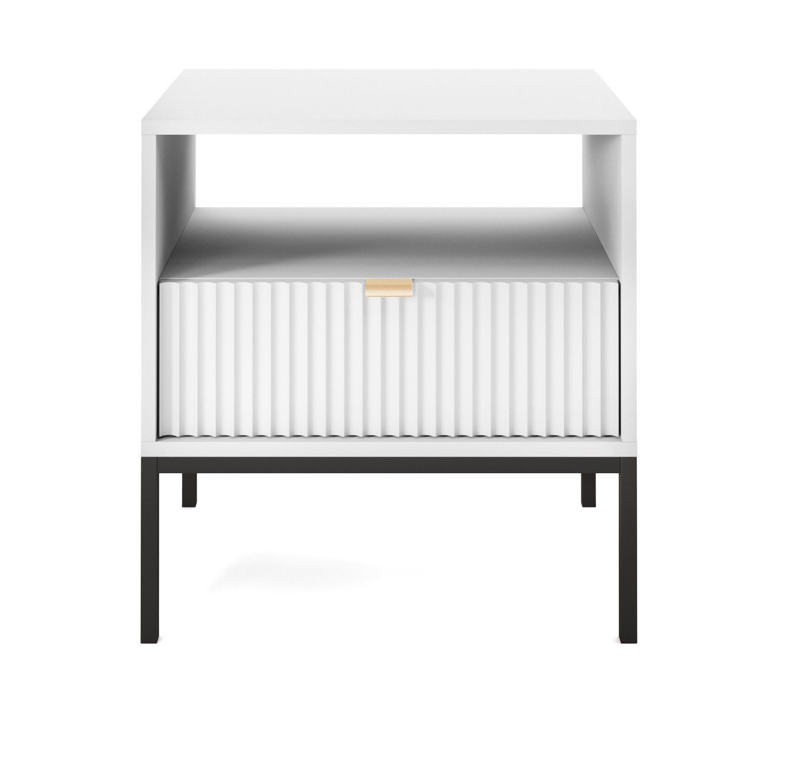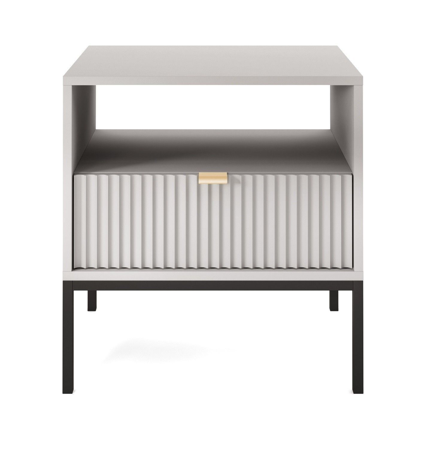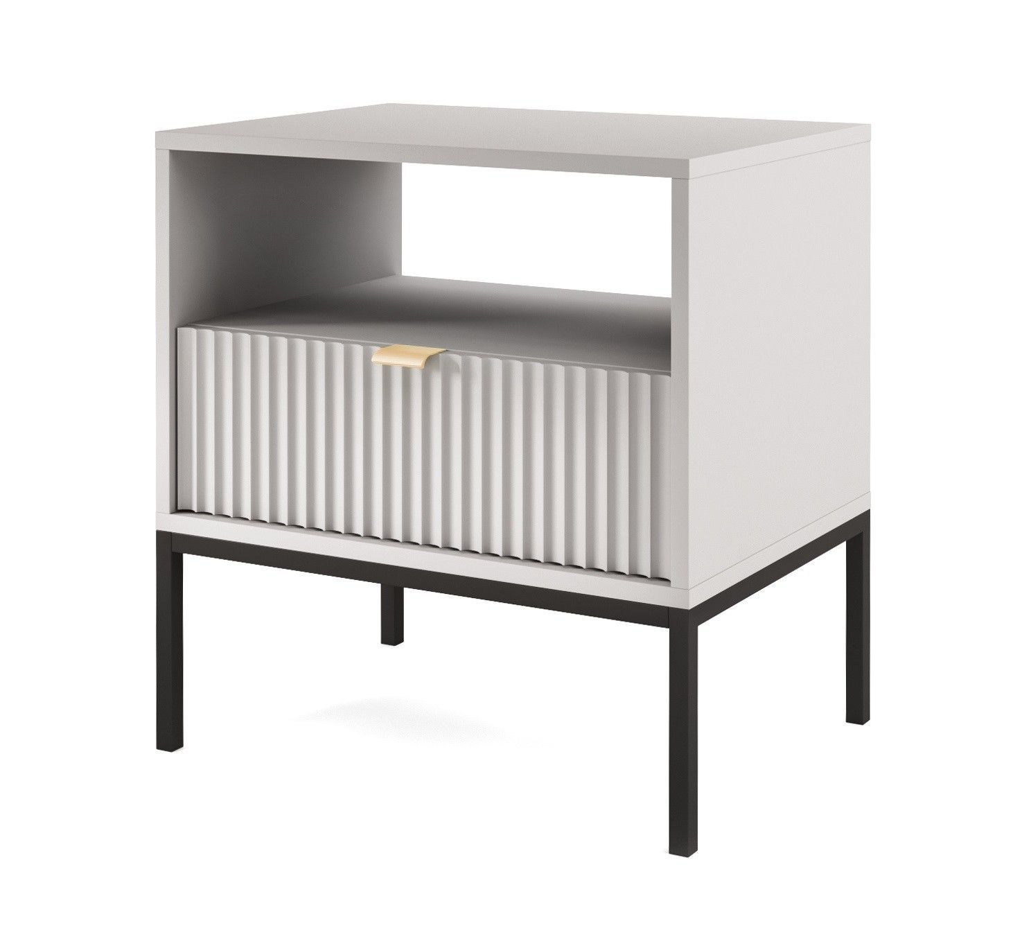 Nachttisch 50 Galla, Nachtschrank mit Schubladen - Metallgestell, geriffelten Fronten