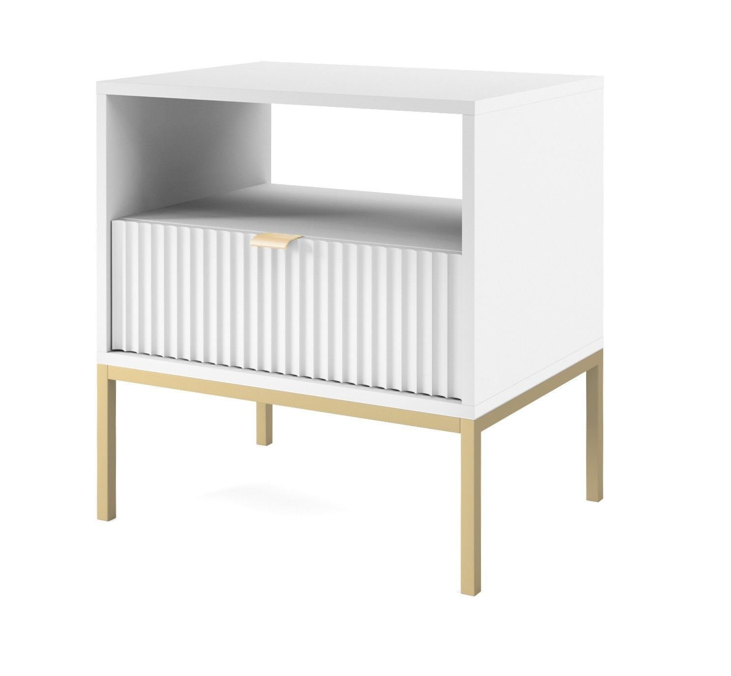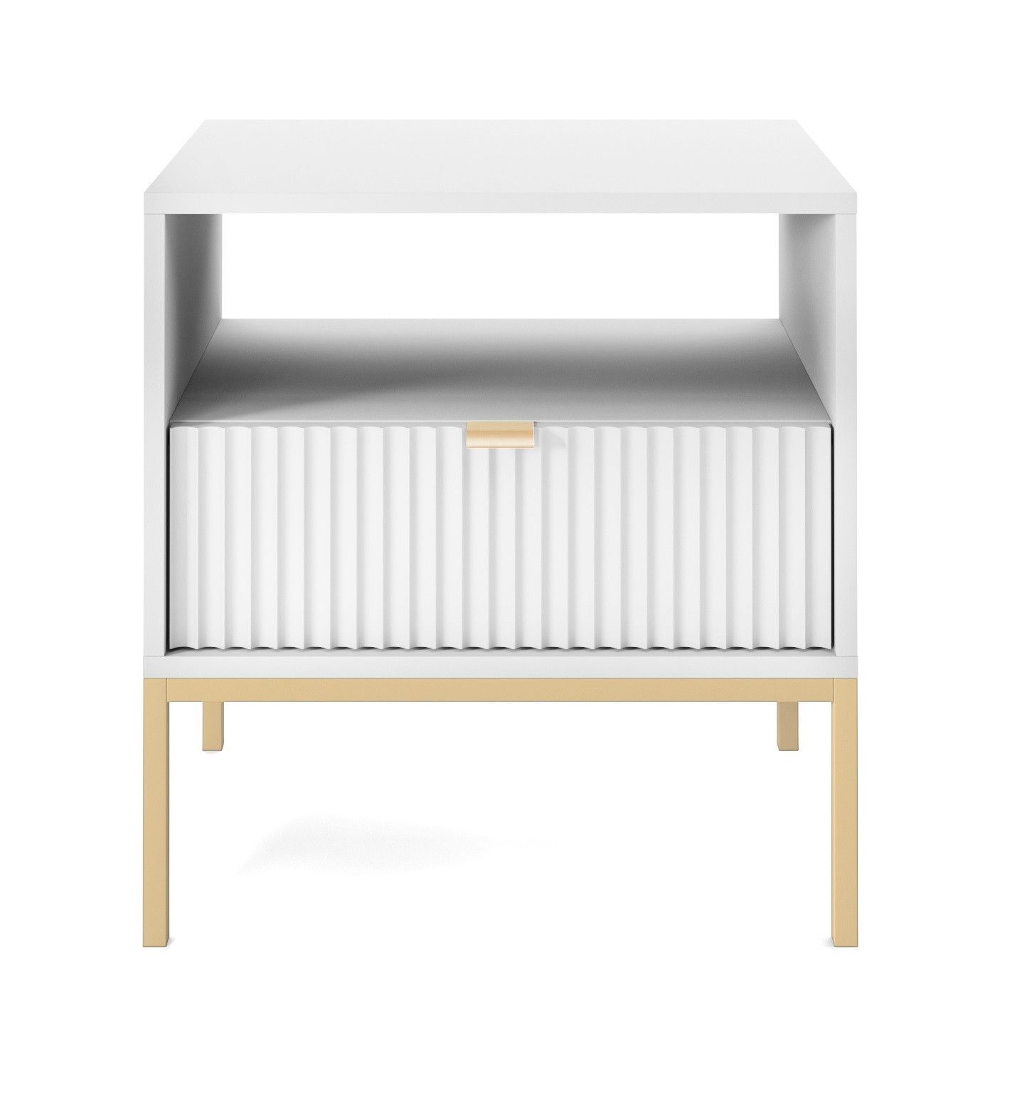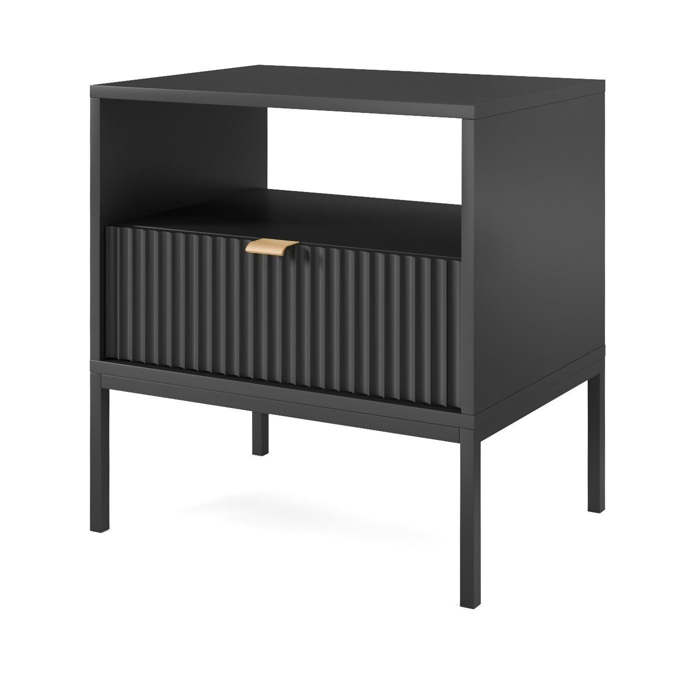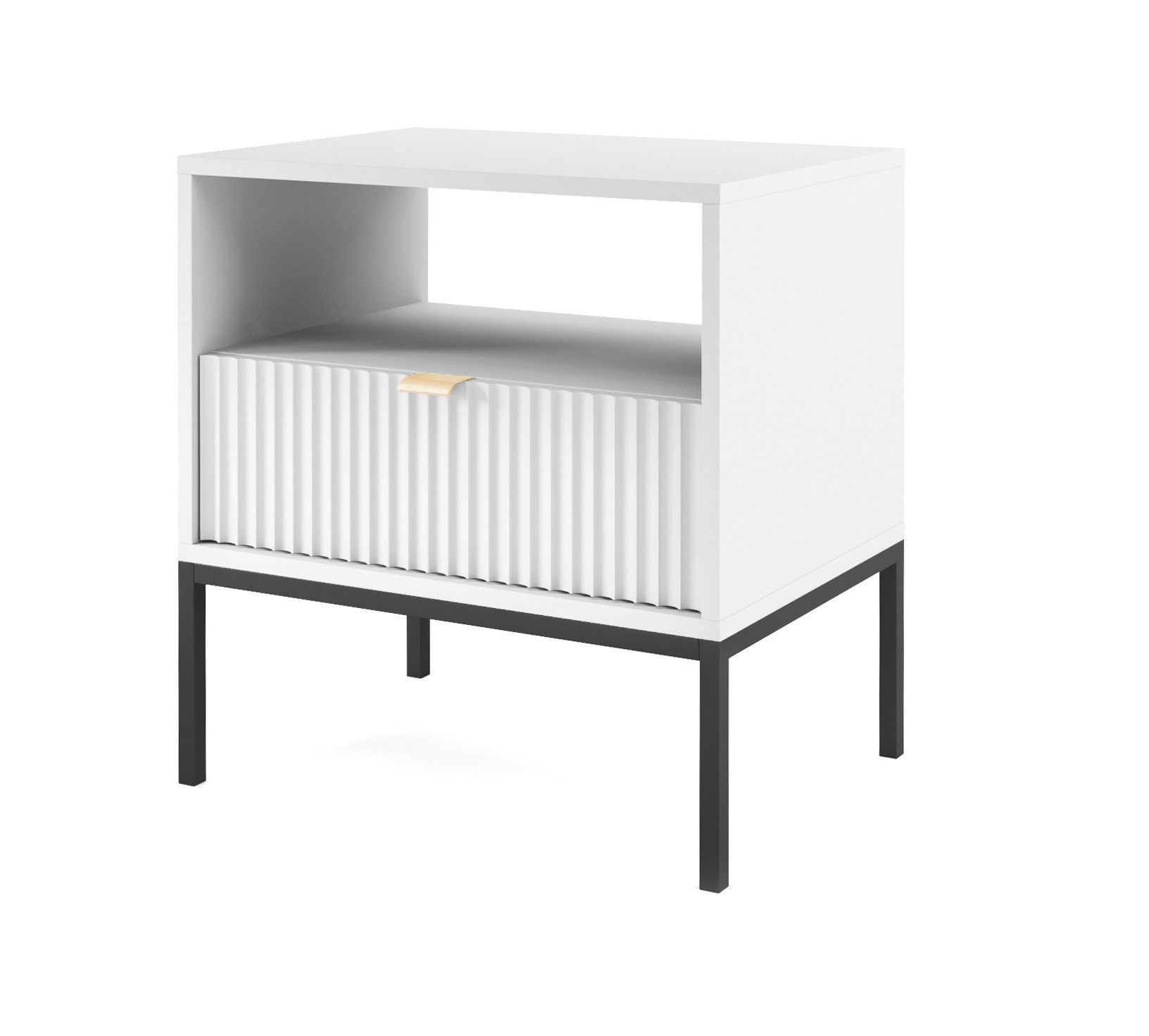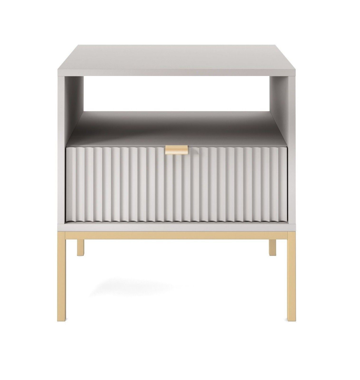 Nachttisch 50 Galla, Nachtschrank mit Schubladen - Metallgestell, geriffelten Fronten