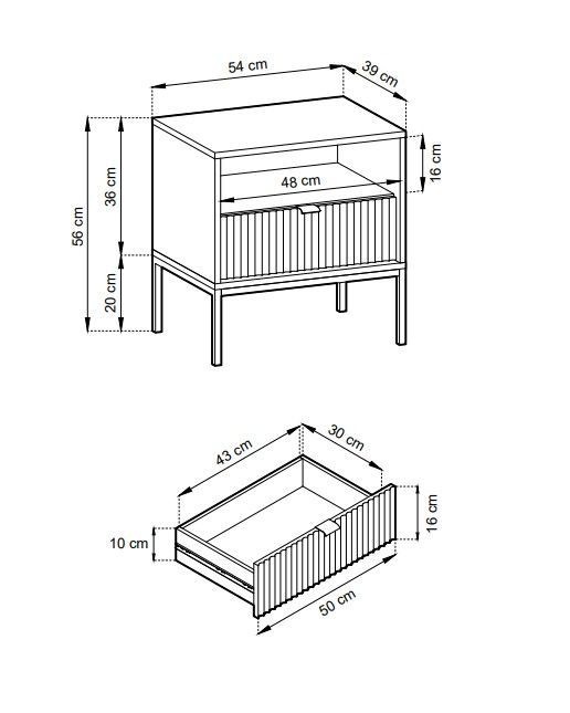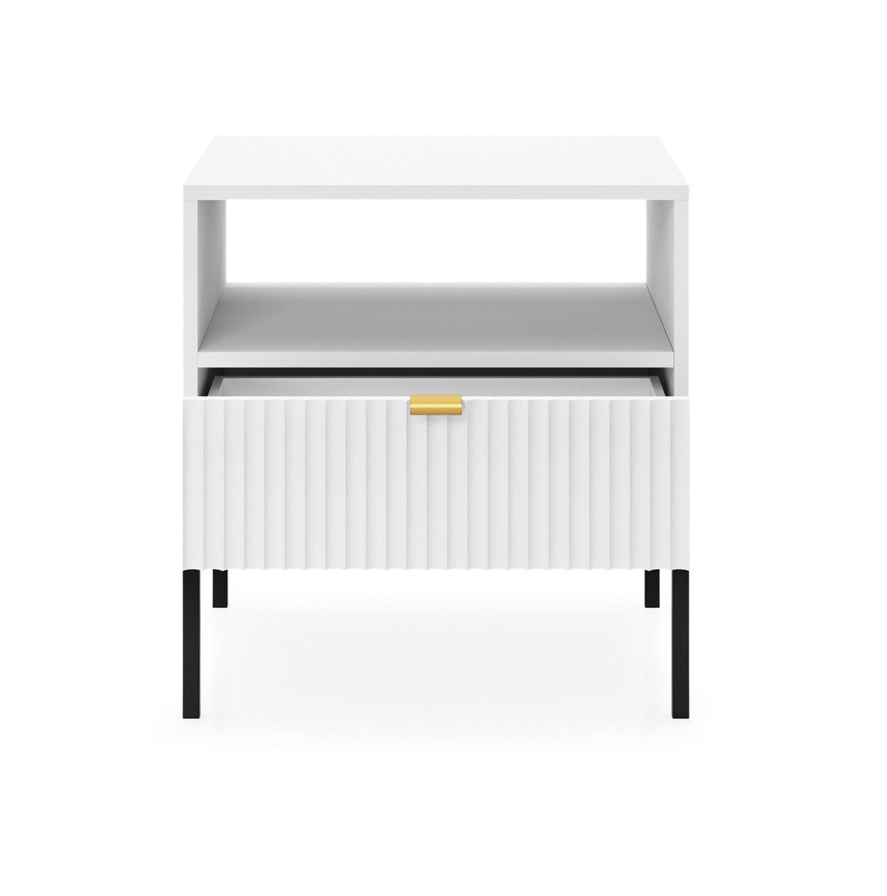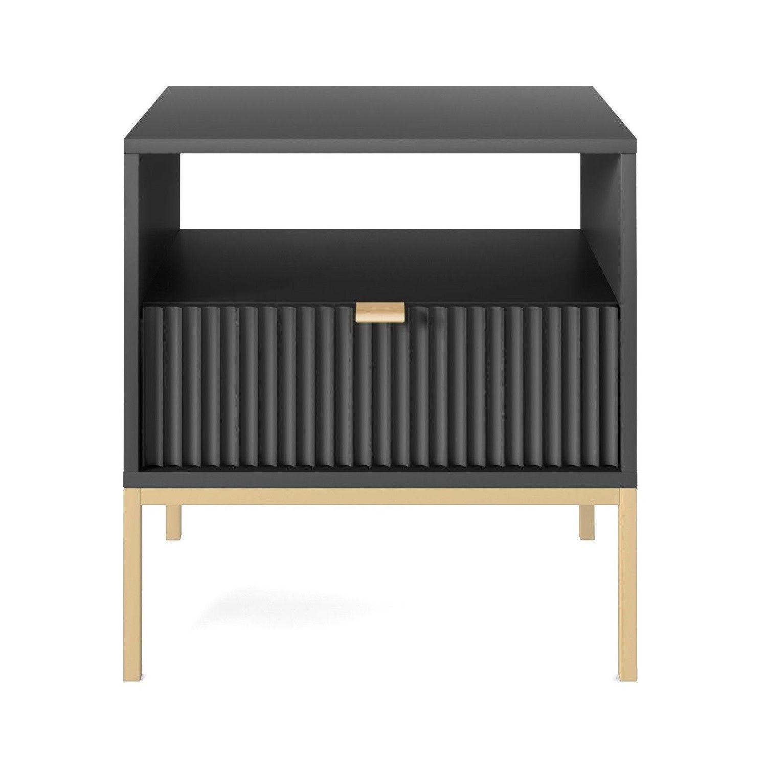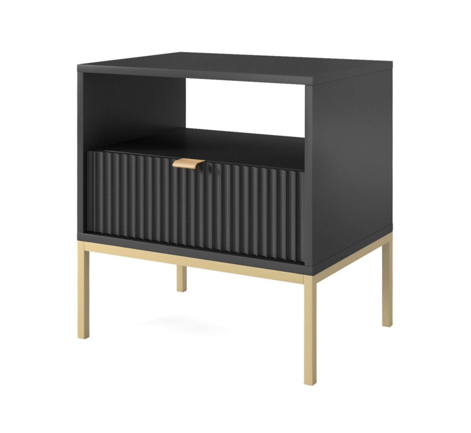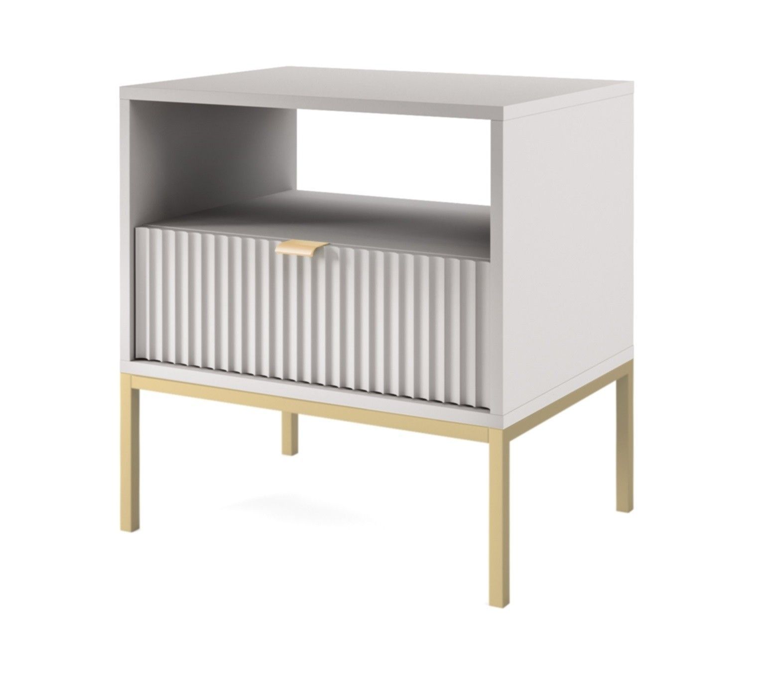 Nachttisch 50 Galla, Nachtschrank mit Schubladen - Metallgestell, geriffelten Fronten