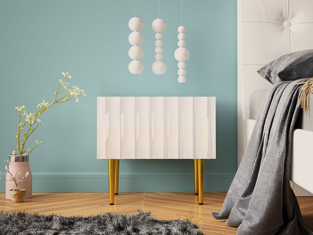 • Nachttisch mit 3 Schubladen, Hochglanz Nachtschrank, Nachtkommode für Boxspringbett
