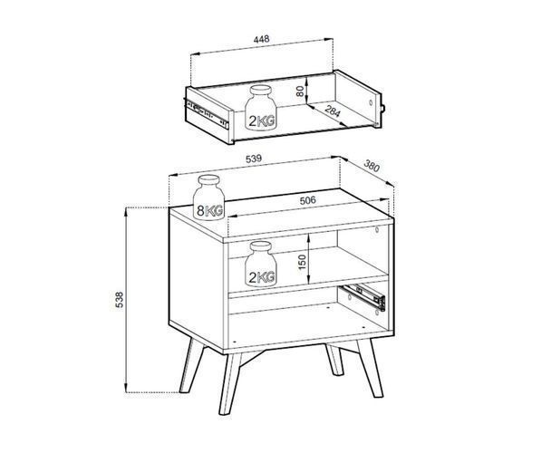Nachttisch Forrest 54x54cm, Sandbeige/ Fichte, Skandi